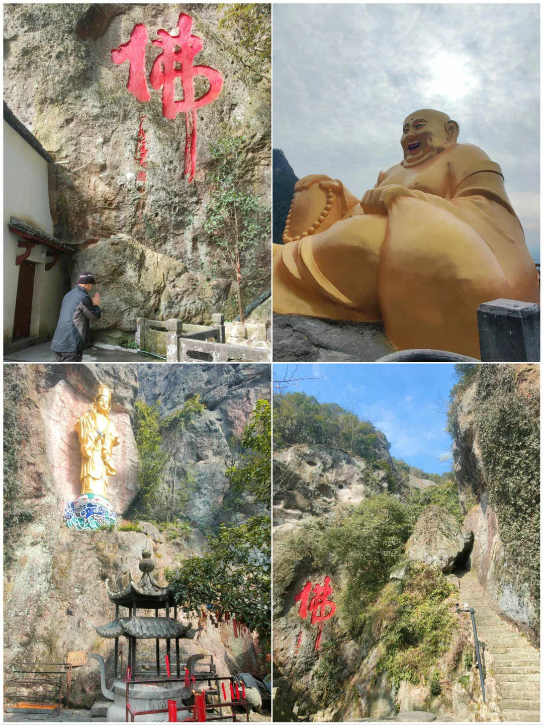 地藏王大殿,大殿依靠的山崖,有一整块如石柱般的山峰,以及一大片仿佛脱落了只剩下一半的巨石,这处奇景也是大慈岩最险绝之处。可以与双面佛合影,来了必须抱佛脚呀,写了2025年心愿,挂上qi福牌,所得皆所愿。