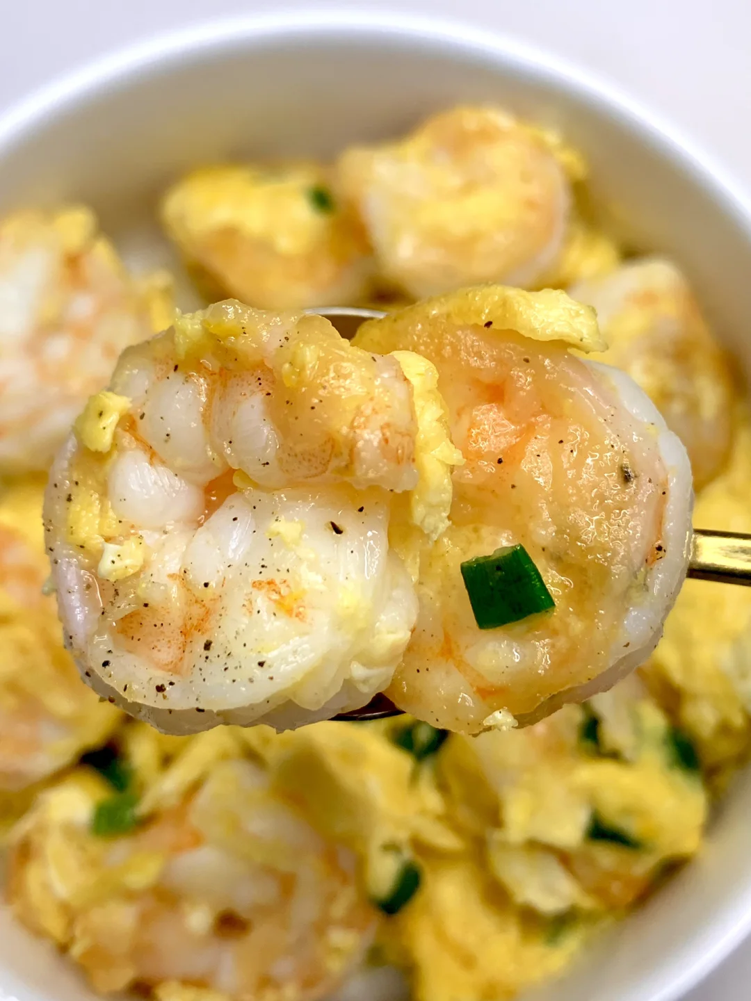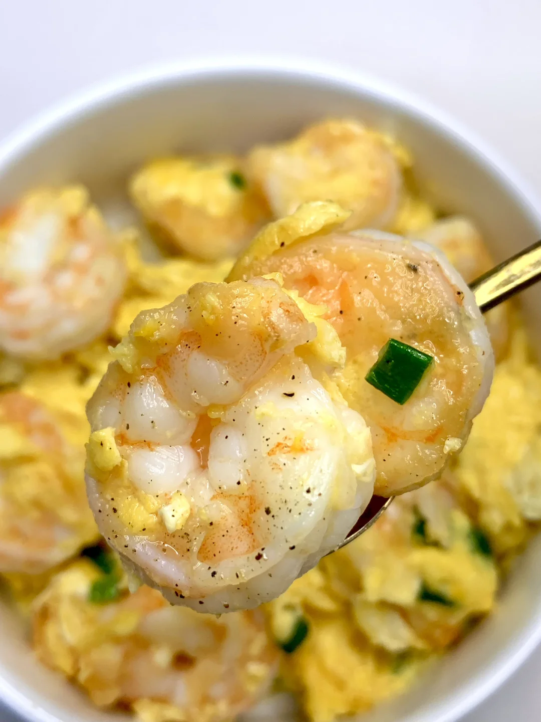 [玫瑰R][玫瑰R]今天给大家分享一道虾仁滑蛋,高蛋白低脂肪,营养丰富又美味,做法超简单,几分钟就能搞定! 姐妹们快去试试叭[派对R][派对R] [开箱R]食材:活虾250克,鸡蛋4个,适量葱花 [开箱R]做法:如图所示~