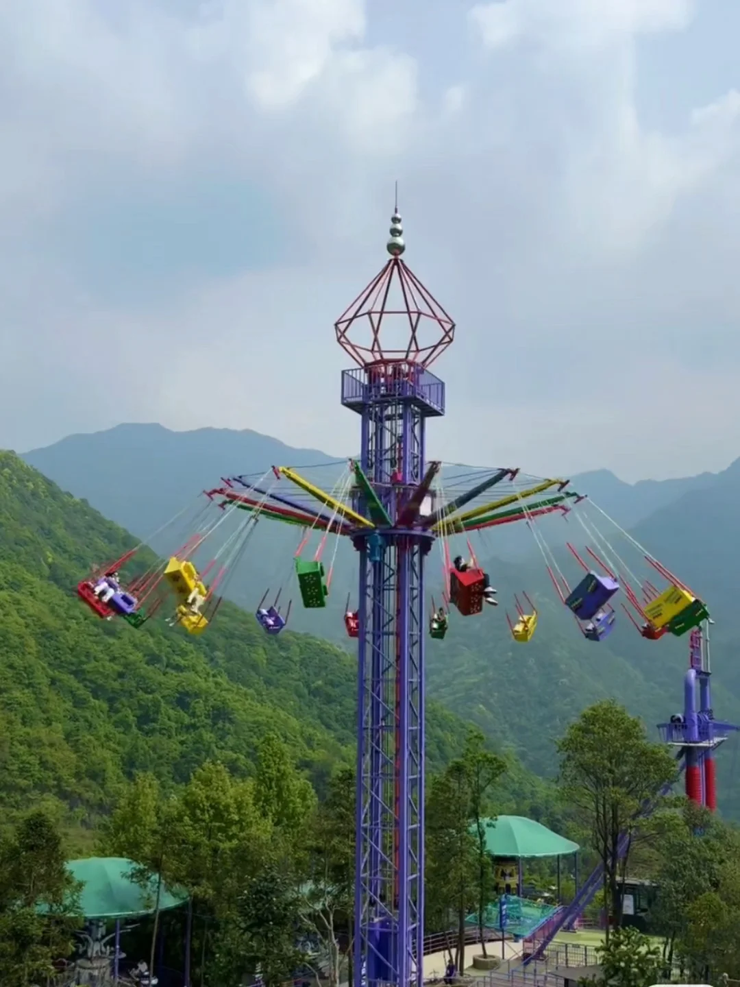 有适合低幼宝宝的旋转木马🎠、 天空飞船;还有敲刺激的极速飞翔和天际摆渡,旁边就是悬崖峭壁,真是独特的体验。
