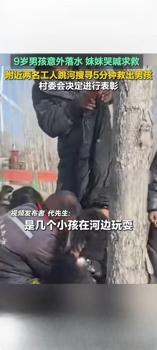 冰河勇救落水男童 两名工人获村委表彰 2026年1月11日下午,河南开封兰考县小宋镇一名9岁男童在河边玩耍时不慎落水,同行妹妹哭喊着跑向附近工厂求救,两名工人挺身而出,冒严寒跳河救人,最终成功挽回男童生命。 事发时,男童迅速沉入1.5米深的河中,被水草缠住。工厂老板娘接到求救后,立即呼喊正在干活的工友支援。62岁的龙相臣与40多岁的工友代艳合毫不犹豫跳入冰冷河水,手持工具摸索搜寻五六分钟后,终于找到失去意识的男童并将其救上岸。 上岸后,男童已无呼吸,二人立即展开心肺复苏,经过十余分钟急救,男童逐渐恢复意识并能站立。随后救护车赶到将其送医,目前男童身体已无大碍,仅因呛水需留院观察。救人过程中,龙相臣因受凉浑身湿透,手机也进水损坏。 工厂负责人表示,将为两名工人报销财物损失并照发当日工资,还计划发放奖金。当地村委会已向上级部门汇报,拟为二人申报见义勇为称号。相关救人视频在快手平台播放量达1.4万次,网友纷纷为两位工人的勇敢与善良点赞,称赞他们在寒冬中传递了人间大爱。救落水儿童 人间温暖随手拍张天空照 人间大爱传递正能量