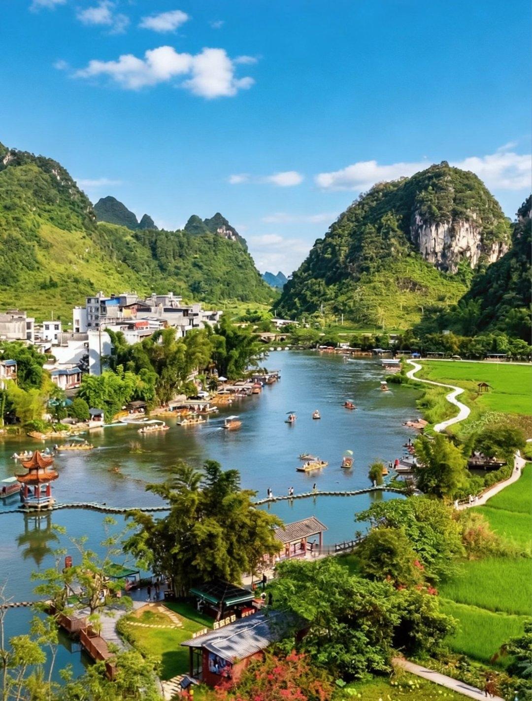 广西崇左,真有世外桃源的感觉!很多人去广西旅游就盯着桂林、北海,却忽略了崇左这个宝藏地。它可是武侠剧超爱取景的地方,仙侠感直接拉满。 来这玩,交通超方便,高铁直达,自驾也爽,一路乡村美,还能看奇形怪状的山。第一天上午去峒那屿湾,这里是《花千骨》取景地,坐着小船穿梭在山水间,还有瀑布群。下午到明仕田园,号称广西“小桂林”,竹筏顺流而下,就是一幅流动的山水画。傍晚去凭祥,美食一条街能让吃货满足。崇左,就是藏在广西的世外桃源!