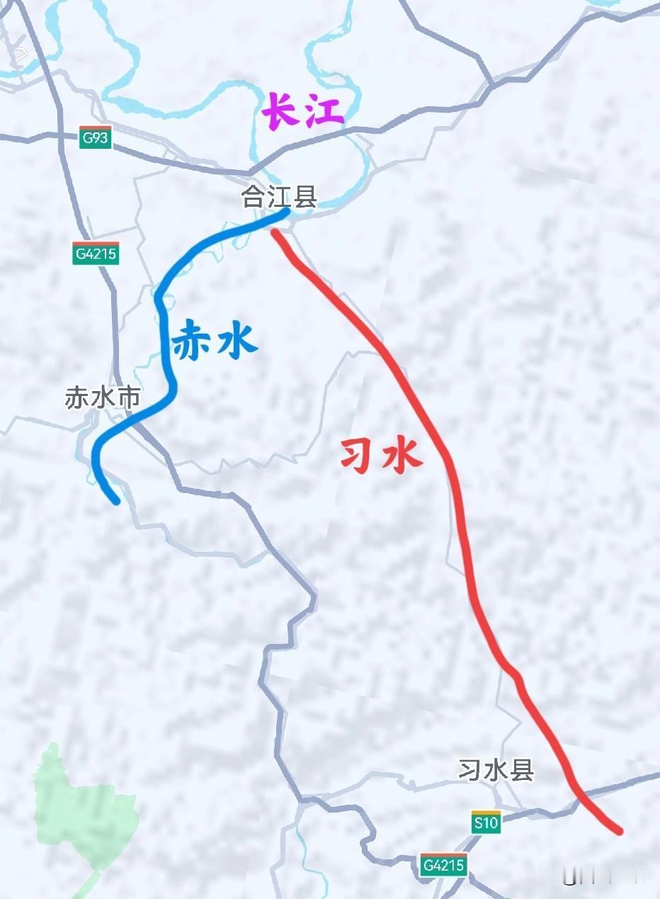 就差几百米,习水就从堂堂的长江一级支流,委屈巴巴地变成了二级支流。 习水和赤水,是贵州西北的两个县,也是两条河的名字,四渡赤水的故事讲的就是这里。四川在这里有个合江县,指的就是赤水河汇合到长江。 但是,附近还有一条习水河,也是山海经上有名头的著名河流,还培育出了习酒这样的名酒。最关键的是,它也流到了合江县城,就在离长江还有几百米的地方,汇入了赤水河,变成了赤水的支流。所以,也就成了长江的二级支流,儿子变孙子,降辈了。