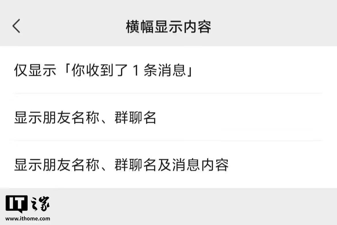 另外,该设置界面提供了细化的隐私控制选项,用户可分别独立决定是否在通知中显示头像以及是否显示消息的具体内容,兼顾了便捷性与隐私保护需求。