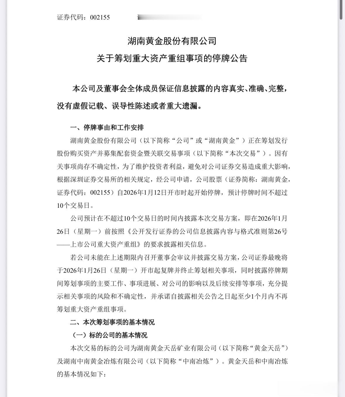 [#湖南黄金拟收购2家黄金公司##A股多家公司全球买金矿#]湖南黄金在1月12日宣布,拟发行股份收购控股股东旗下的黄金天岳及中南冶炼100%股权,布局黄金资源。据公开消息,黄金天岳涉及平江万古金矿田,远景储量超1000吨,估值达6000亿元;中南冶炼年处理金精矿8万吨,年产黄金4吨。湖南黄金宣布收购两家黄金公司的同一天,国际金价再创新高。公开报道显示,1月12日,现货黄金史上首次涨破4600美元/盎司,去年累计涨幅更是超过70%。据每日经济新闻,金价狂飙以来,洛阳钼业、紫金矿业、江西铜业、盛屯矿业等A股多家矿业公司纷纷在全球寻找黄金资源。
