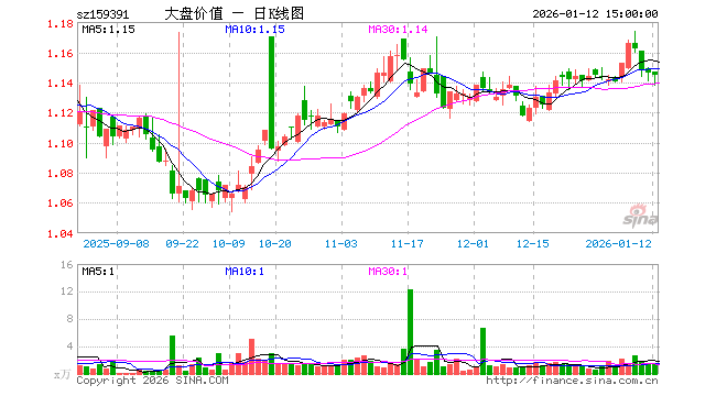 1月12日,大盘价值ETF(159391)跌0.09%,成交额162.14万元。当日份额减少300.00万份,最新份额为1.51亿份,近20个交易日份额减少8500.00万份。最新资产净值计算值为1.73亿元。