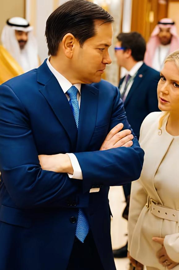 白宫发言人莱维特这眼神是什么意思呢? 莱维特和鲁比奥在聊什么话题呢? 莱维特手放
