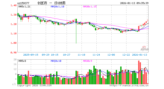 1月13日,创业板医药ETF国泰(159377)开盘涨0.41%,报1.230元。创业板医药ETF国泰(159377)重仓股方面,迈瑞医疗开盘涨0.56%,爱尔眼科涨0.26%,康龙化成涨2.00%,泰格医药涨1.96%,常山药业跌2.53%,爱美客跌0.08%,智飞生物跌1.20%,新产业涨0.02%,乐普医疗涨2.10%,沃森生物涨0.49%。