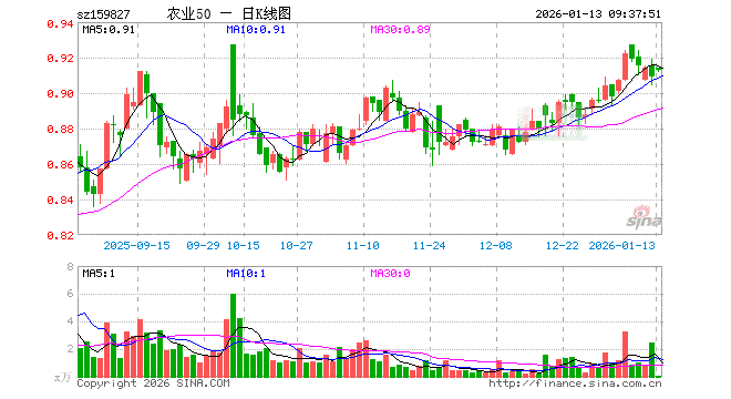1月13日,农业50ETF(159827)开盘涨0.55%,报0.914元。农业50ETF(159827)重仓股方面,牧原股份开盘涨0.20%,温氏股份跌0.12%,海大集团涨0.02%,藏格矿业涨0.08%,盐湖股份涨1.38%,新希望跌0.11%,亚钾国际跌0.30%,梅花生物跌0.10%,扬农化工跌0.37%,大北农跌0.24%。