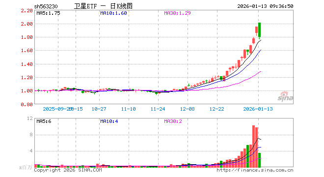 卫星ETF(563230)业绩比较基准为中证卫星产业指数收益率,管理人为富国基金管理有限公司,基金经理为曹璐迪,成立(2025-09-04)以来回报为94.17%,近一个月回报为74.13%。