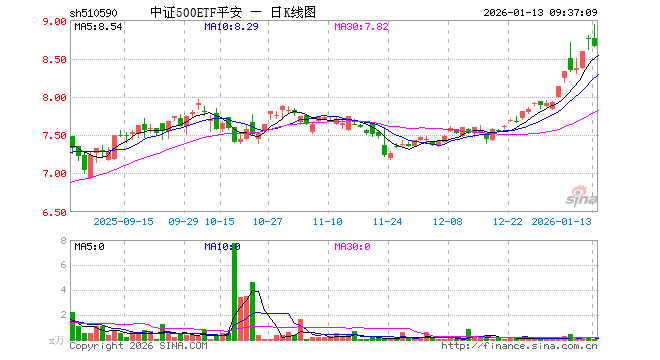 中证500ETF平安(510590)业绩比较基准为中证500指数收益率,管理人为平安基金管理有限公司,基金经理为李严,成立(2018-03-23)以来回报为64.31%,近一个月回报为15.24%。