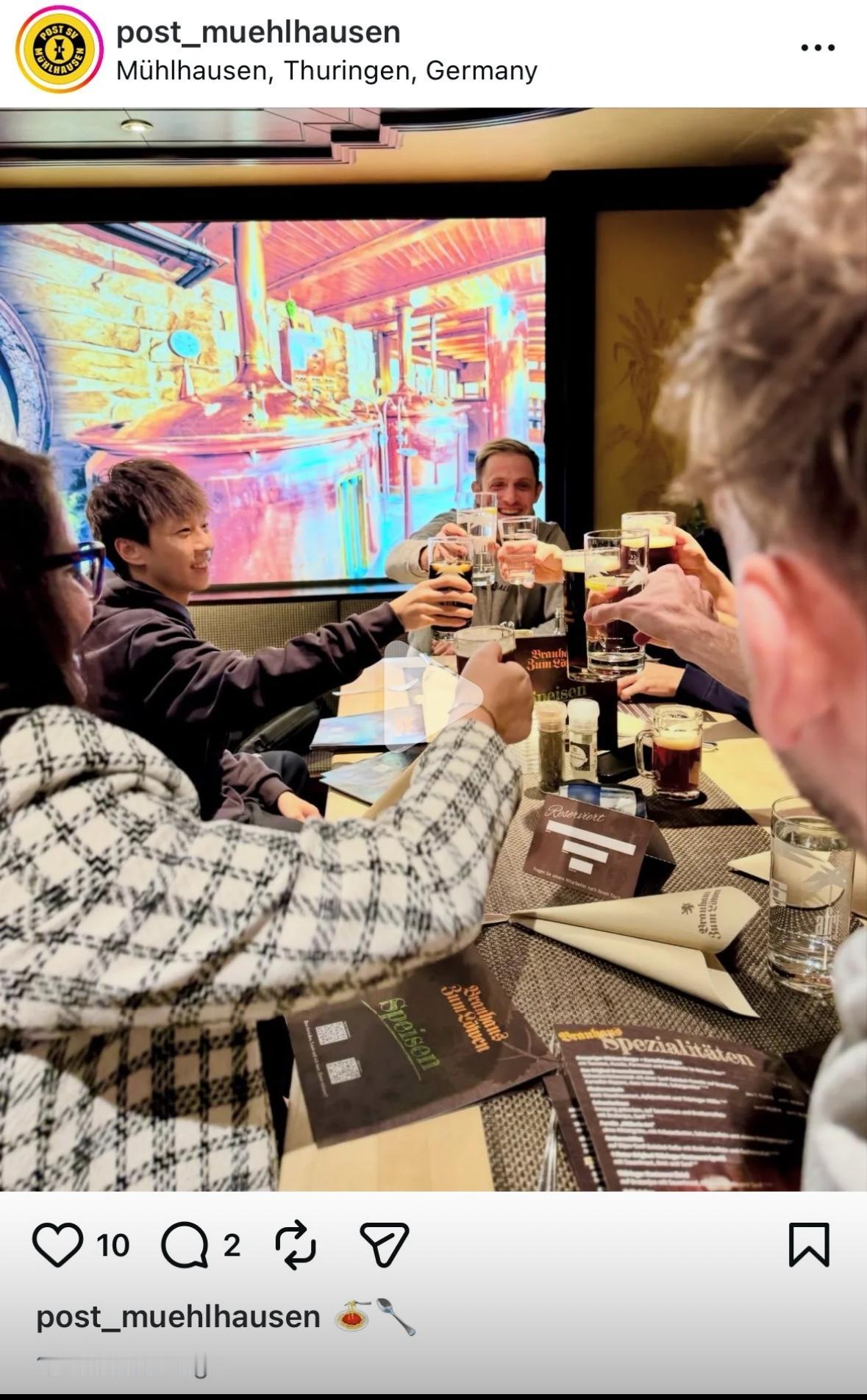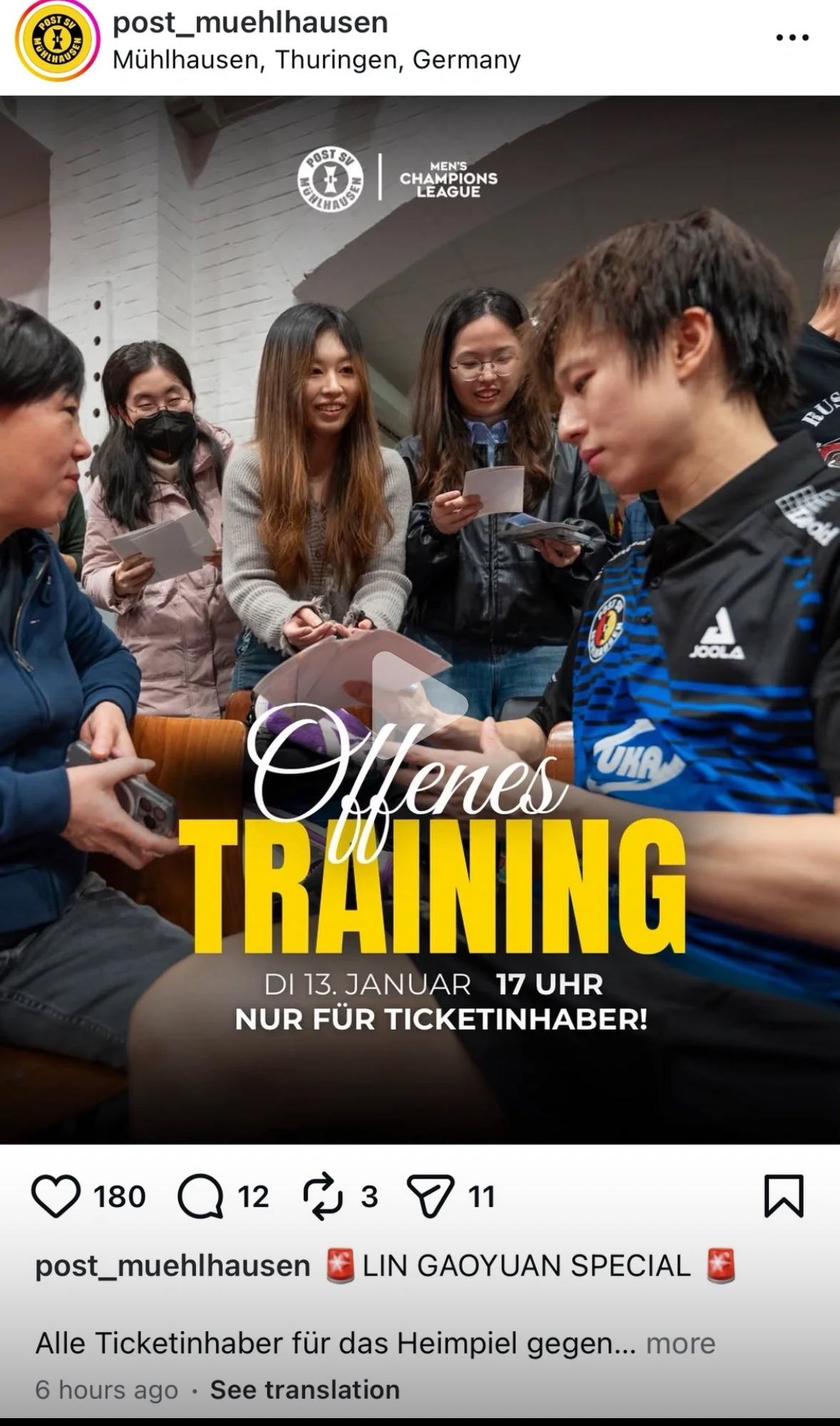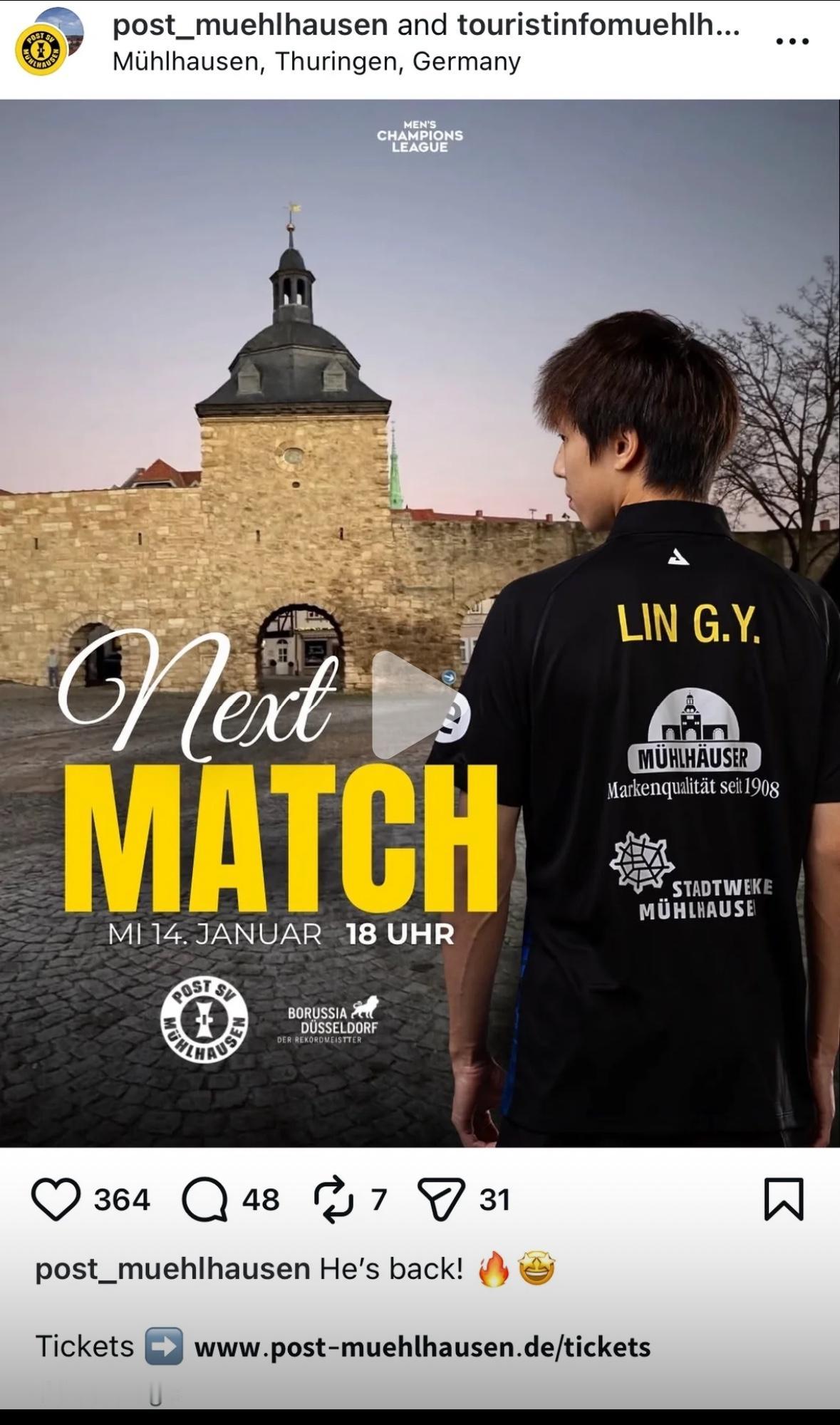 穆尔豪斯俱乐部连发7条ins欢迎林高远的到达 林高远到达德国打欧冠, 穆尔豪森俱乐部派专人去迎接, 而且还聚餐欢迎林高远的 远道而来! 林高远所代表的穆尔豪森 俱乐部能力一般, 1月15日凌晨一点对阵 杜塞尔多夫俱乐部, 杜塞可是一支很强的老球队, 有邱党,卡尔伯格…… 林高远不会上来就打邱党吧? 穆尔豪森只有努力向前走 才能遇到樊振东的萨尔布吕肯, 欧冠的比赛氛围很好👍, 希望林高远也签下德甲, 请小林将军一直笑下去, 在自己热爱的领域发光发热!