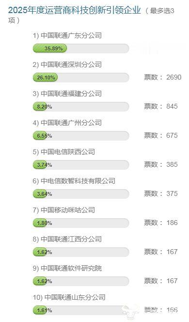 作为运营商行业的重要评选盛典以及年度表彰平台,由运营商财经网发起的2026财经TMT“领袖榜”评选活动,在日前已经开启投票通道,正在获得进行中。“2025年度运营商科技创新引领企业”奖项投票暂为靠前的企业名单发布。