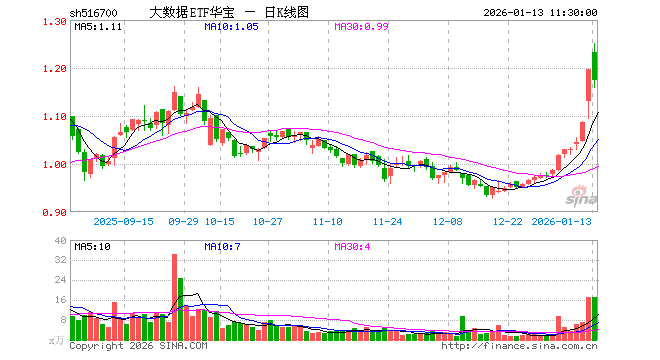 1月13日,截止午间收盘,大数据产业ETF(516700)跌1.76%,报1.175元,成交额2058.39万元。大数据产业ETF(516700)重仓股方面,中科曙光截止午盘跌2.89%,科大讯飞涨4.43%,浪潮信息跌2.77%,紫光股份跌1.85%,恒生电子涨0.06%,拓维信息跌3.77%,润泽科技跌1.45%,中国长城跌0.42%,用友网络涨9.99%,深信服涨1.32%。
