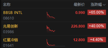 今日三只新股上市,兆易创新涨40%,BBSBINTL涨65%,红星冷链涨超4%。