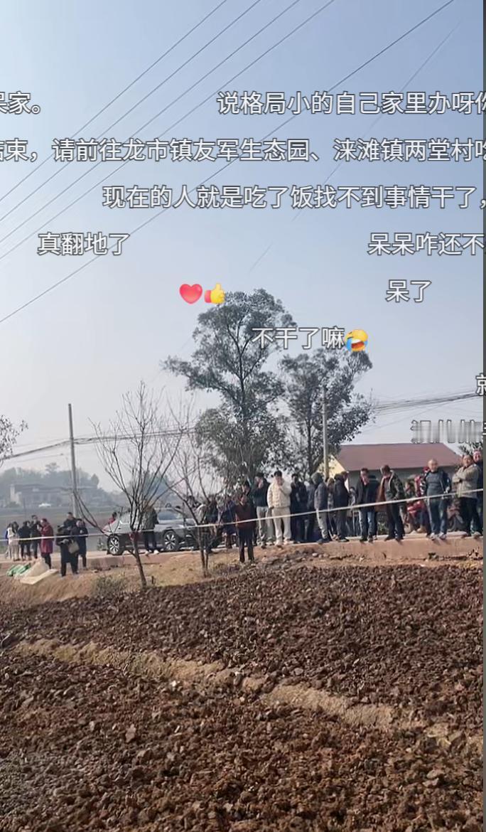 呆呆家的杀猪饭活动昨天晚上已经结束了,但是今天仍然有很多人前往。 此前被网友踩结实的田,好像已经都被翻松了,应该不会影响耕种。 现在也不允许踩田里了。 呆呆现在在睡觉了,没有直播,她这几天只睡了几个小时,现在补睡眠中。 还有一些工作人员仍然在维持秩序,做善后工作。