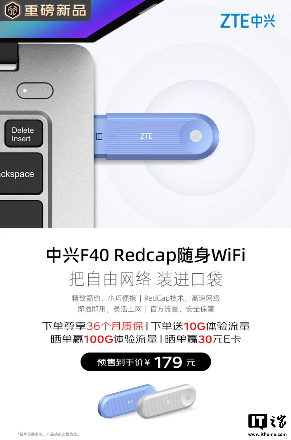 IT之家1月13日消息,中兴现已在京东上架F40RedCap随身Wi-Fi,该产品支持Wi-Fi6,5G双网版定价为179元,插卡版定价为219元。