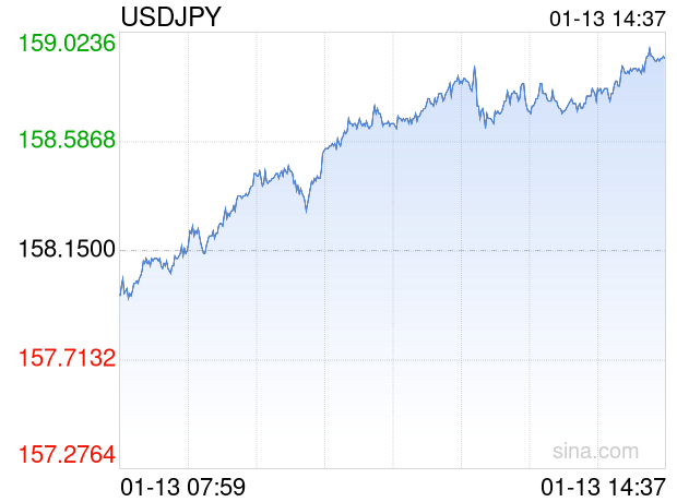 新浪外汇消息2026年01月13日,截至14时37分,外汇市场上美元兑日元汇率突破1美元兑换158.9600日元。涨幅为0.5122%