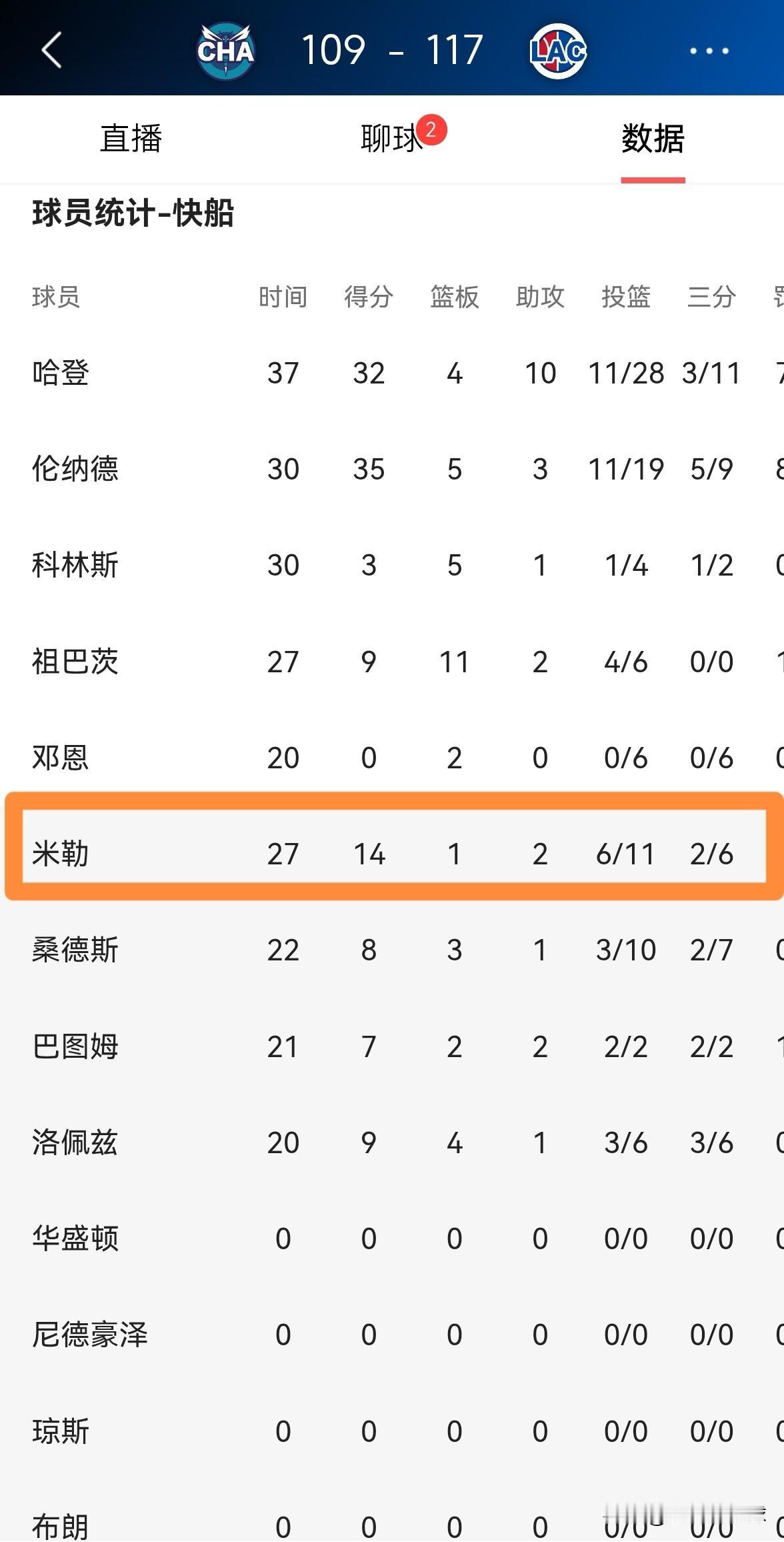 快船小将乔丹-米勒真是太争气了!在今天快船主场以117:109击败黄蜂的比赛中,米勒不负众望再次打出了非常精彩的表现,为球队在攻防两端都提供了非常大的帮助。 整场比赛下来,米勒替补出战27分钟,投篮11中6,其中三分球6中2得到14分,还有1篮板2助攻,他的场上正负值为+1。 如今的米勒已经成为了快船替补阵容的头号得分手,他在快船的地位越来越稳固了。