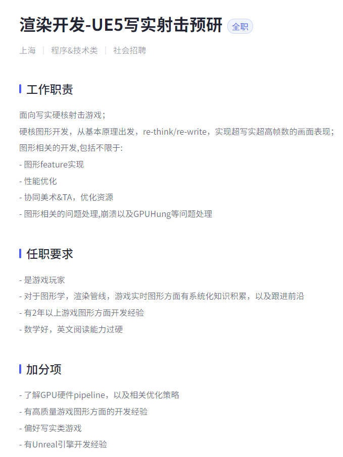UE5写实射击!米哈游发布招聘:新项目可能是写实向硬核射击游戏