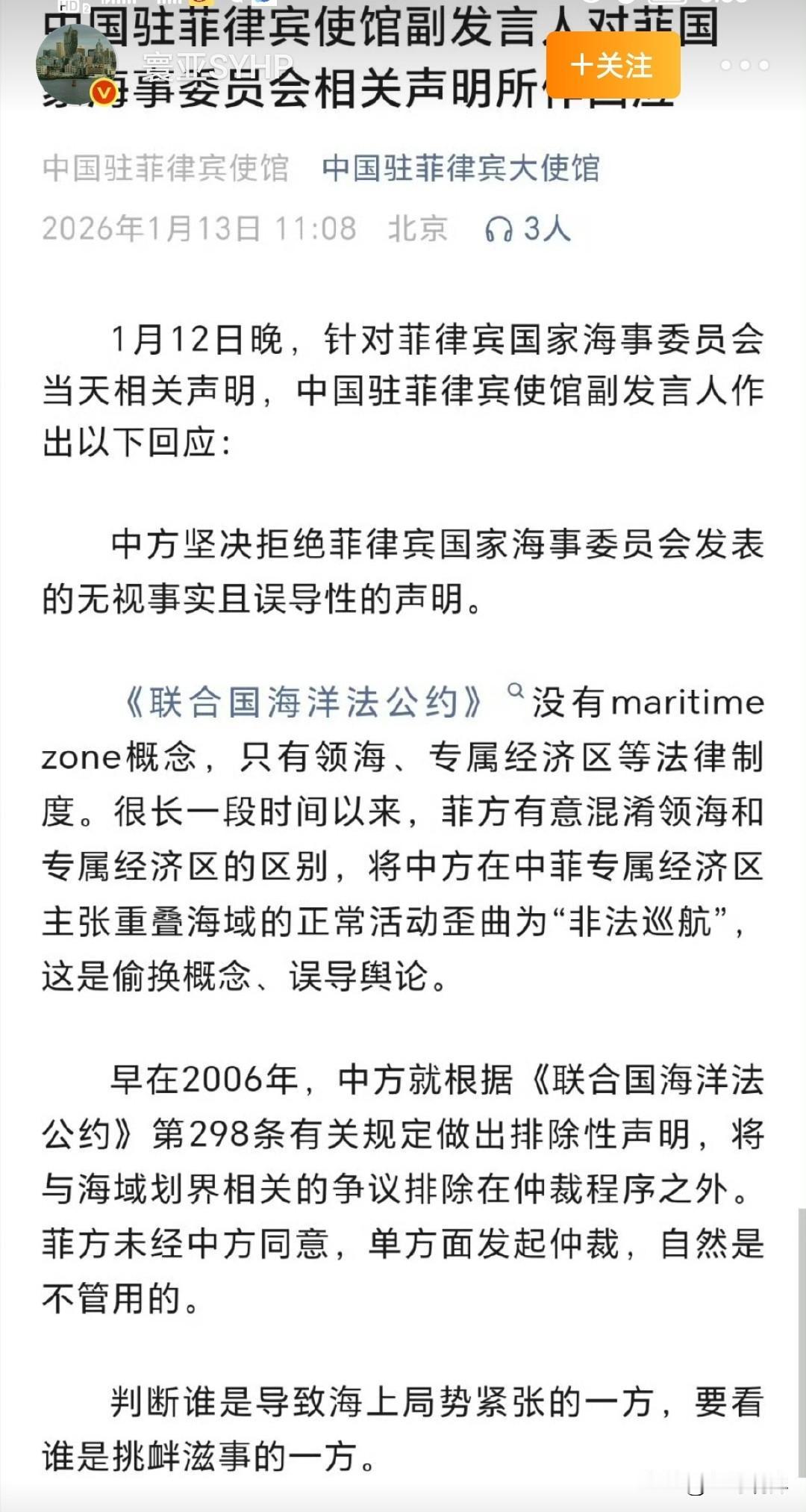 中方在南海问题上“保持最大限度忍耐和克制”的表态,既是对菲方长期挑衅的严正回应,