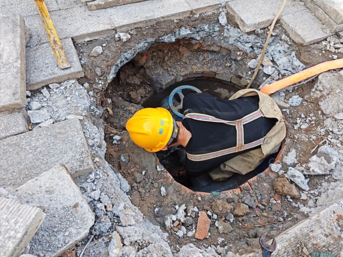 作业现场,抢修人员分工明确、默契协作。他们在泥泞而又狭窄的作业区域中精准操作,按照维修规范,每一道工序都严格遵循操作规程,确保维修质量。尽管水流裹挟着泥沙增加了作业难度,但抢修人员始终坚守岗位、专注攻坚,以娴熟的技术和高效的协作推进抢修进程。经过奋战,漏水点成功封堵,恢复正常供水。