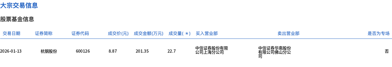 杭钢股份今日大宗交易平价成交22.7万股,成交额201.35万元