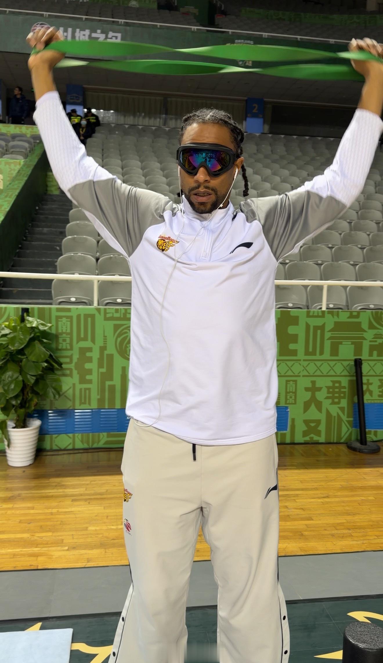 虎扑01月13日讯广东队记更新社媒分享萨林杰热身照。