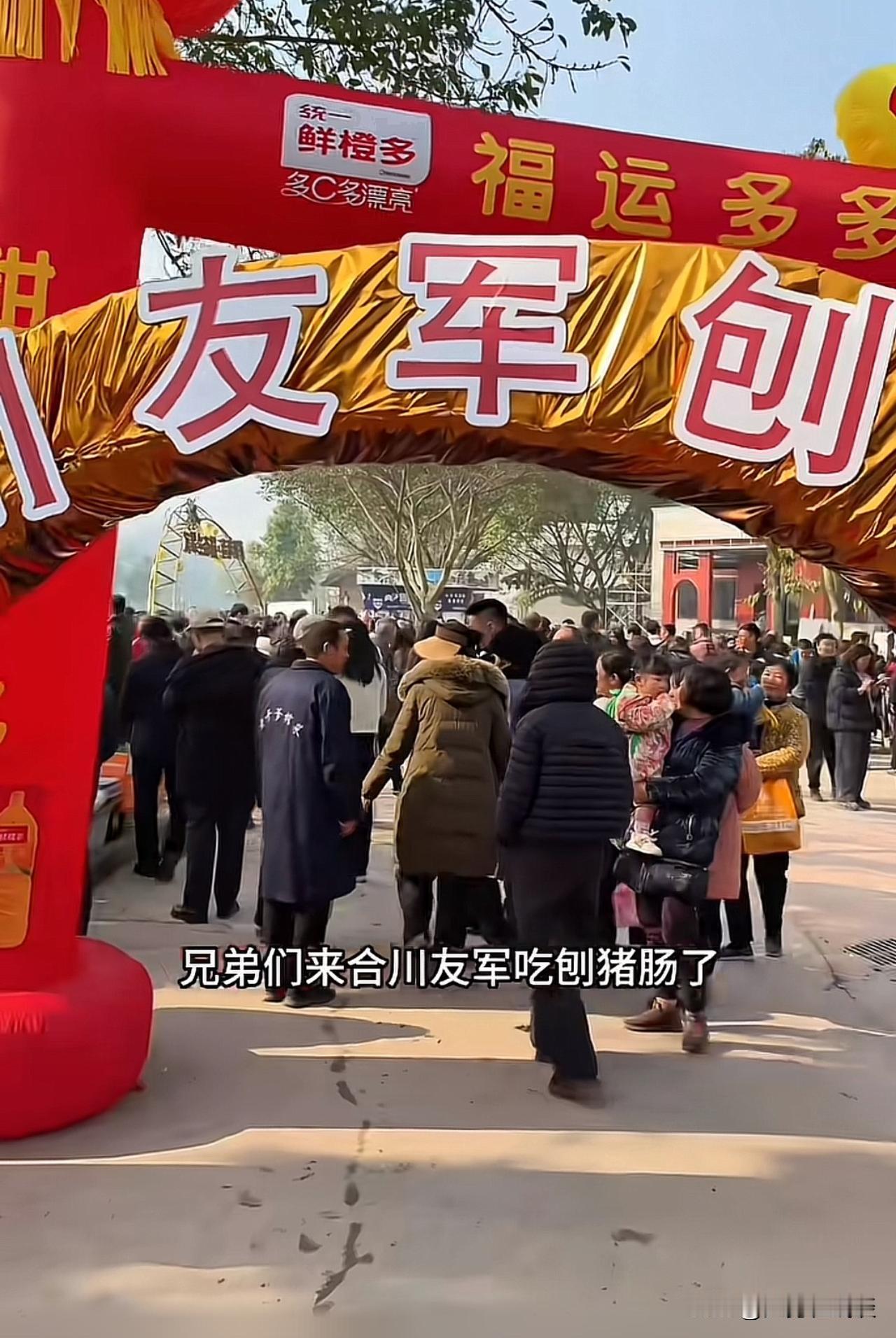 呆呆刨猪汤结束啦 合川“友军刨猪汤”接手了,还是舍不得这波流量现场依旧是人山人海,每天免费100桌,没有任何的费用,一直办到正月15结束。 目前各地都相继模仿“刨猪汤”,看谁的本事大了,如果是集体办或者政府办的话估计会有搞头,如果是个人模仿的话,估计不会有“呆呆”那么好的运气。 这下“呆呆”挣了几百万估计睡觉都要笑醒了,个人模仿者都想暴富,估计成功者万中无一……