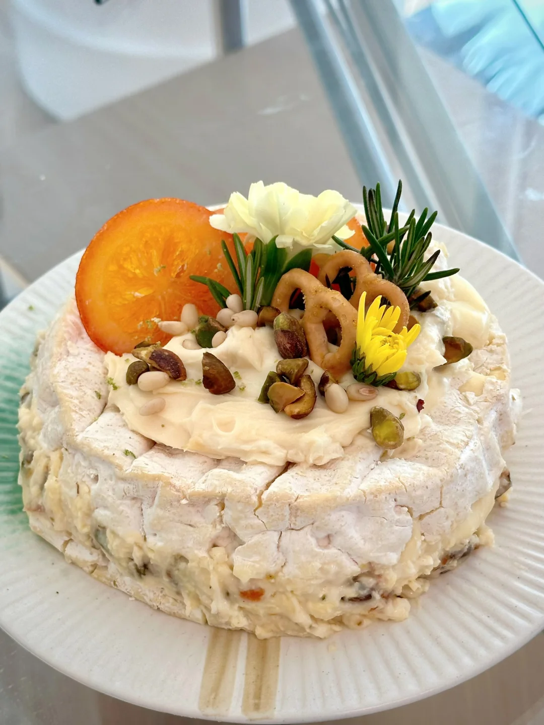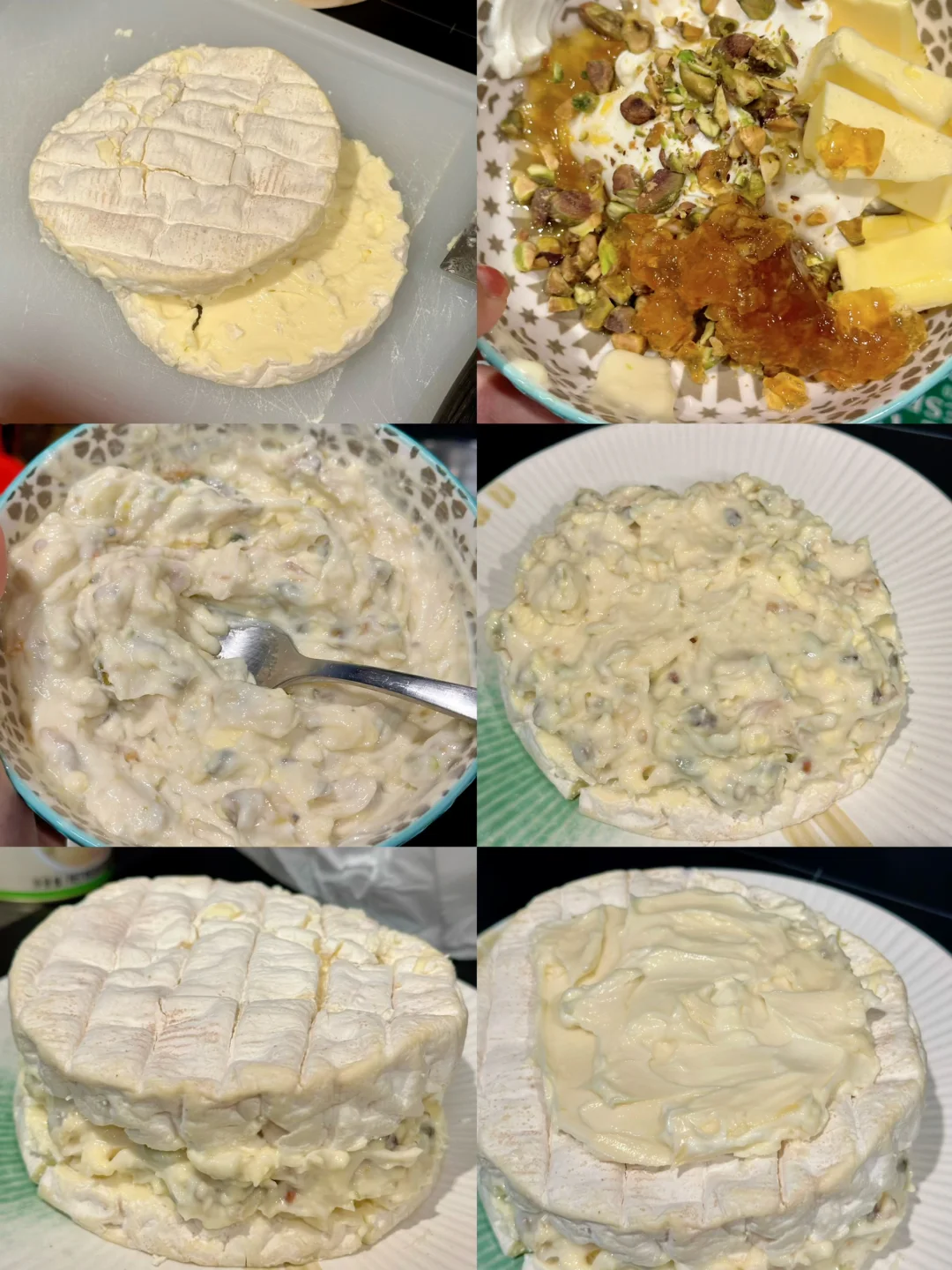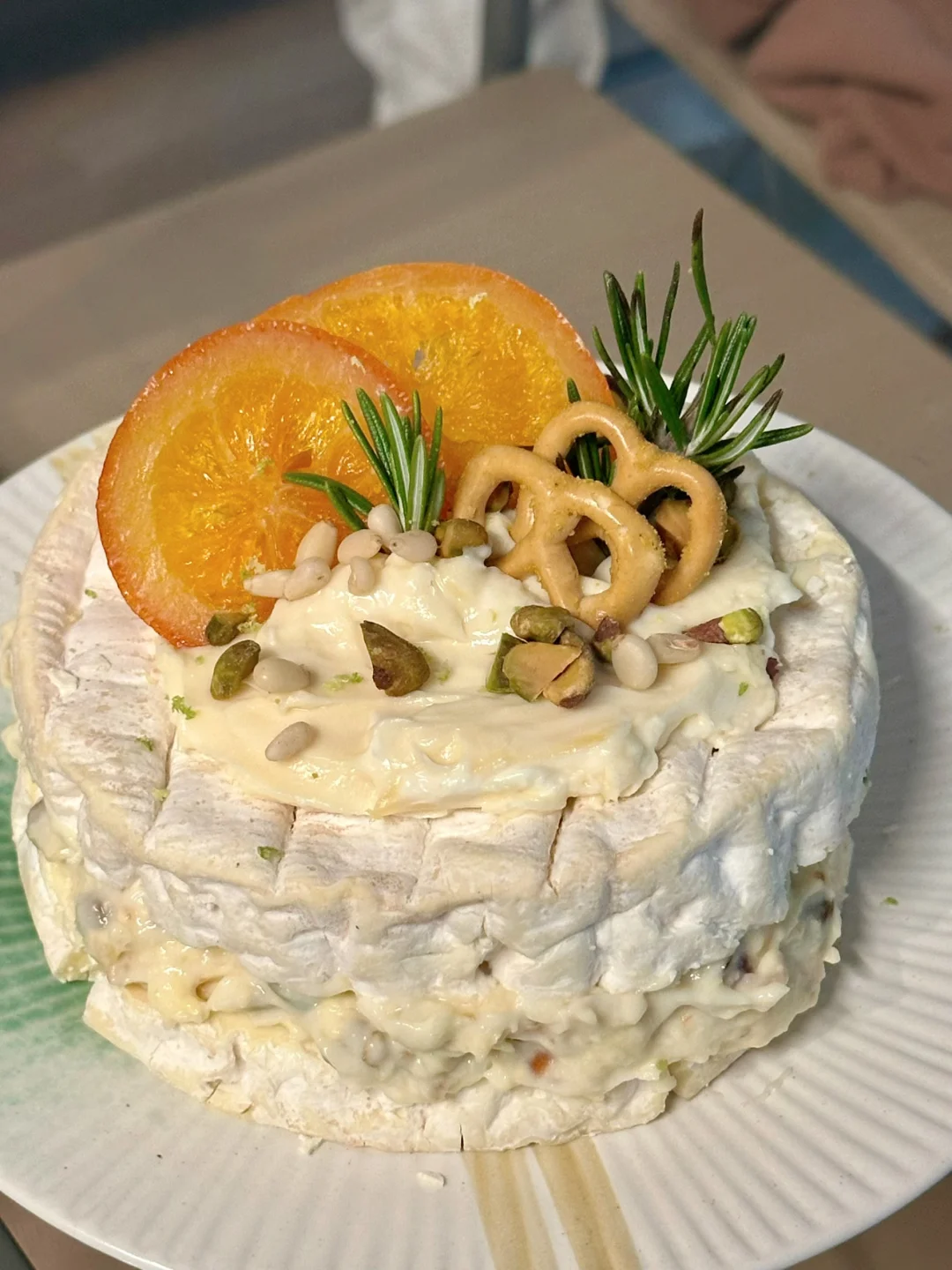 用一整轮布理奶酪做主体,完整保留了外皮的风味和内部的流心。对我自制的布理开心果香橙抹酱感到非常得意!柑橘果香配上脆脆的坚果,还带着蜂蜜的甘甜,可以说是画龙点睛了嘻嘻~点缀上装饰以后,谁还分得清这是奶酪,还是一款韩式私房甜品哈哈!