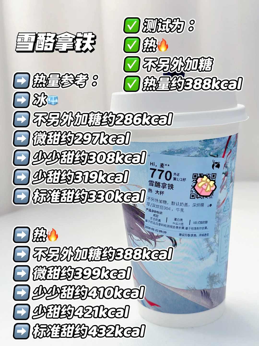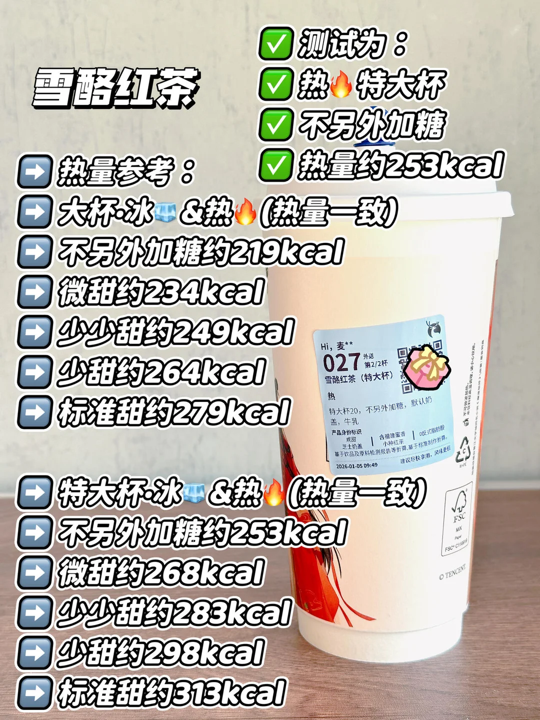 测试为:特大杯·热🔥不另外加糖 热量约253kcal