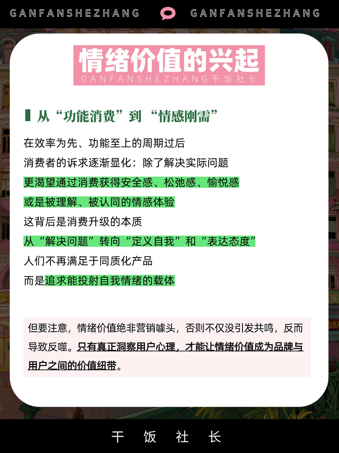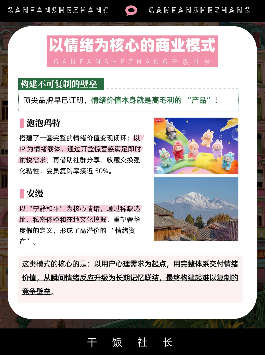 当物质丰盈、技术趋同 谁能精准拿捏用户的“感觉” 谁就能赢得人心与钱包! 从泡泡玛特的成瘾闭环 到安缦的宁静溢价 看懂情绪成为当下品牌最刚需的关键打法! 本期带你拆解情绪价值如何从营销热词 进化为重塑商业模式、产品研发与品牌叙事的核心引擎!