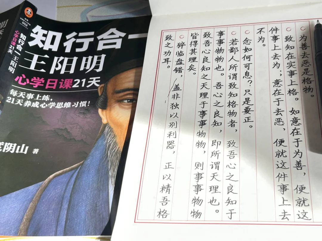 我试着逐字抄写王阳明心学,当笔尖划过纸张的瞬间,外界的压力与杂念竟都被暂时隔绝,内心会变得出奇平静。