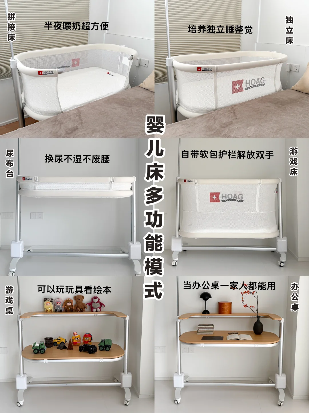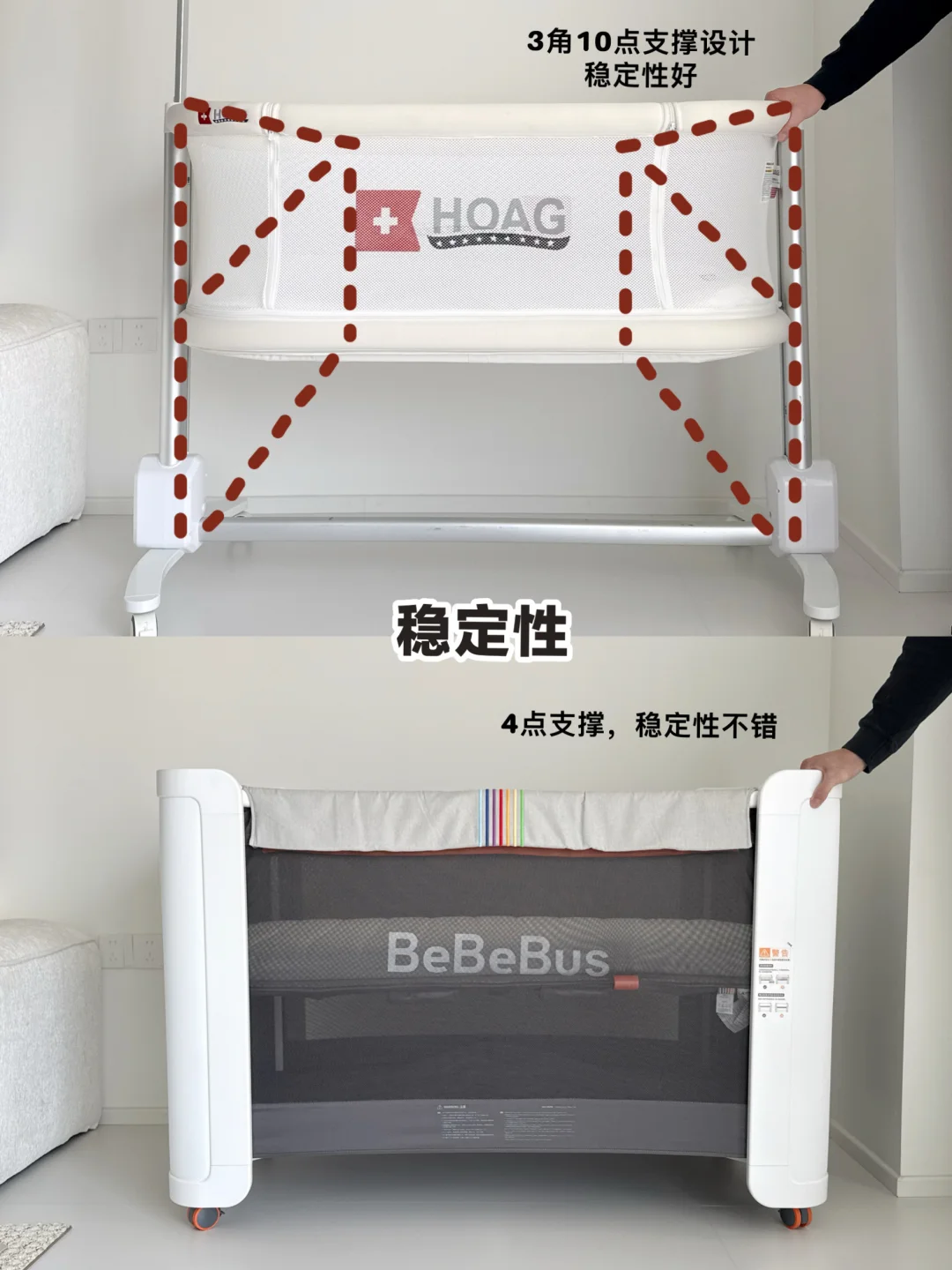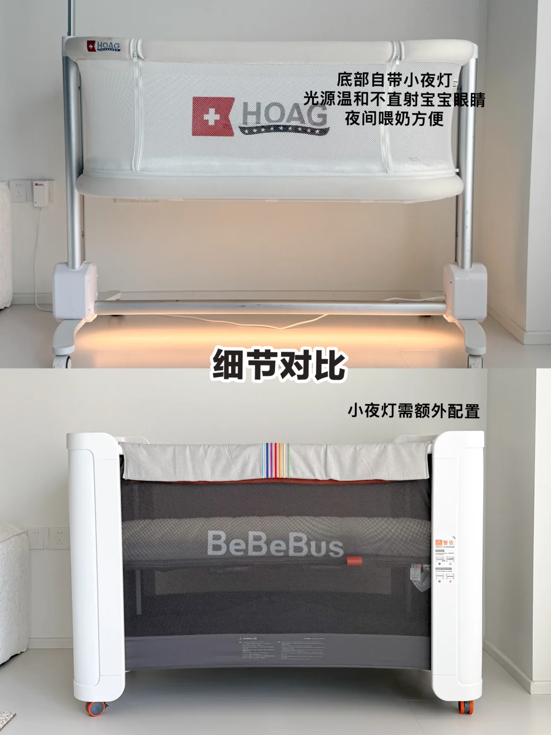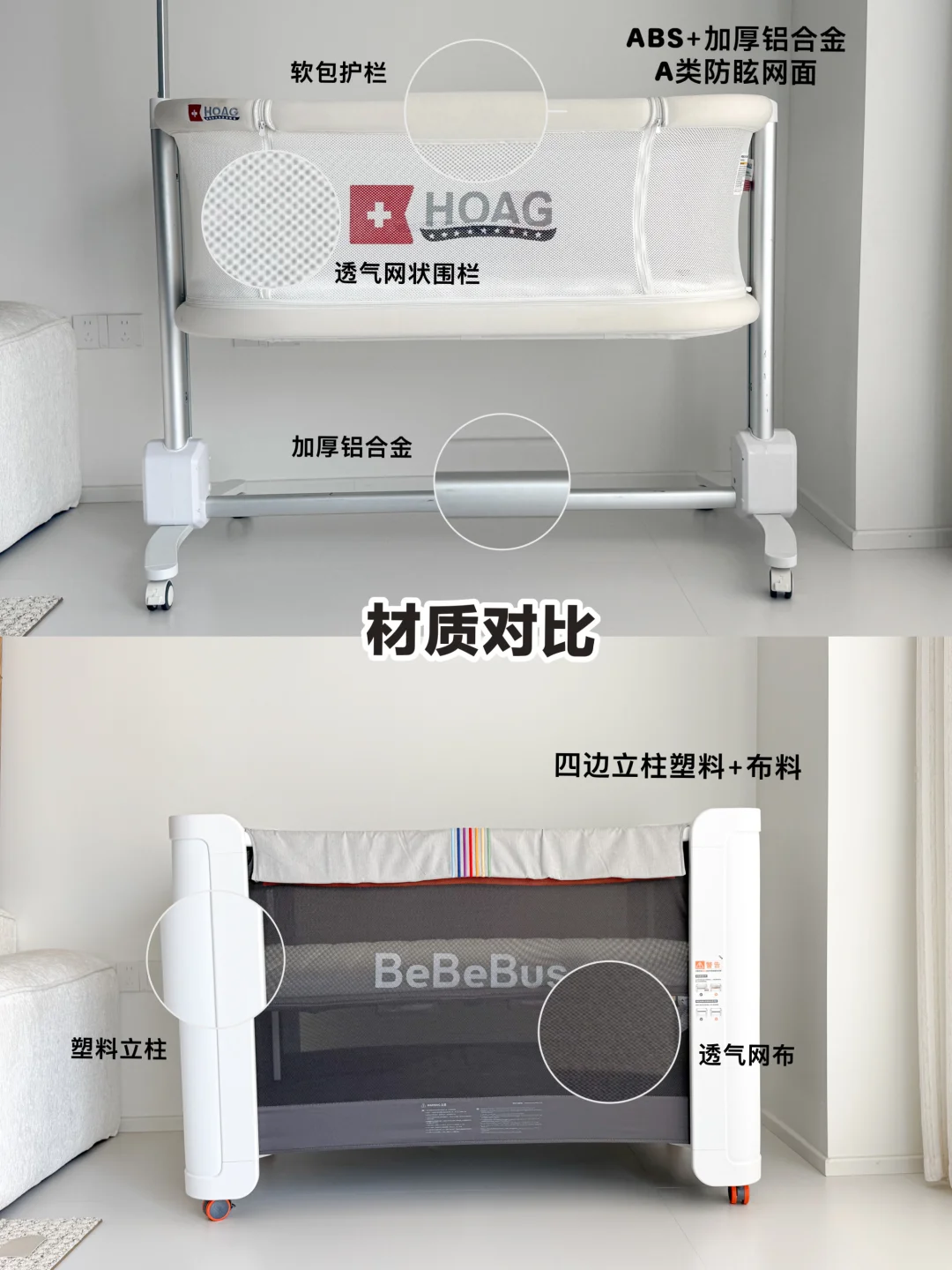 两款婴儿床各有侧重,追求多功能和长久使用选Hoag百变学霸床,看重便携和省空间选折叠婴儿床,新手爸妈根据自家情况挑就不会错~