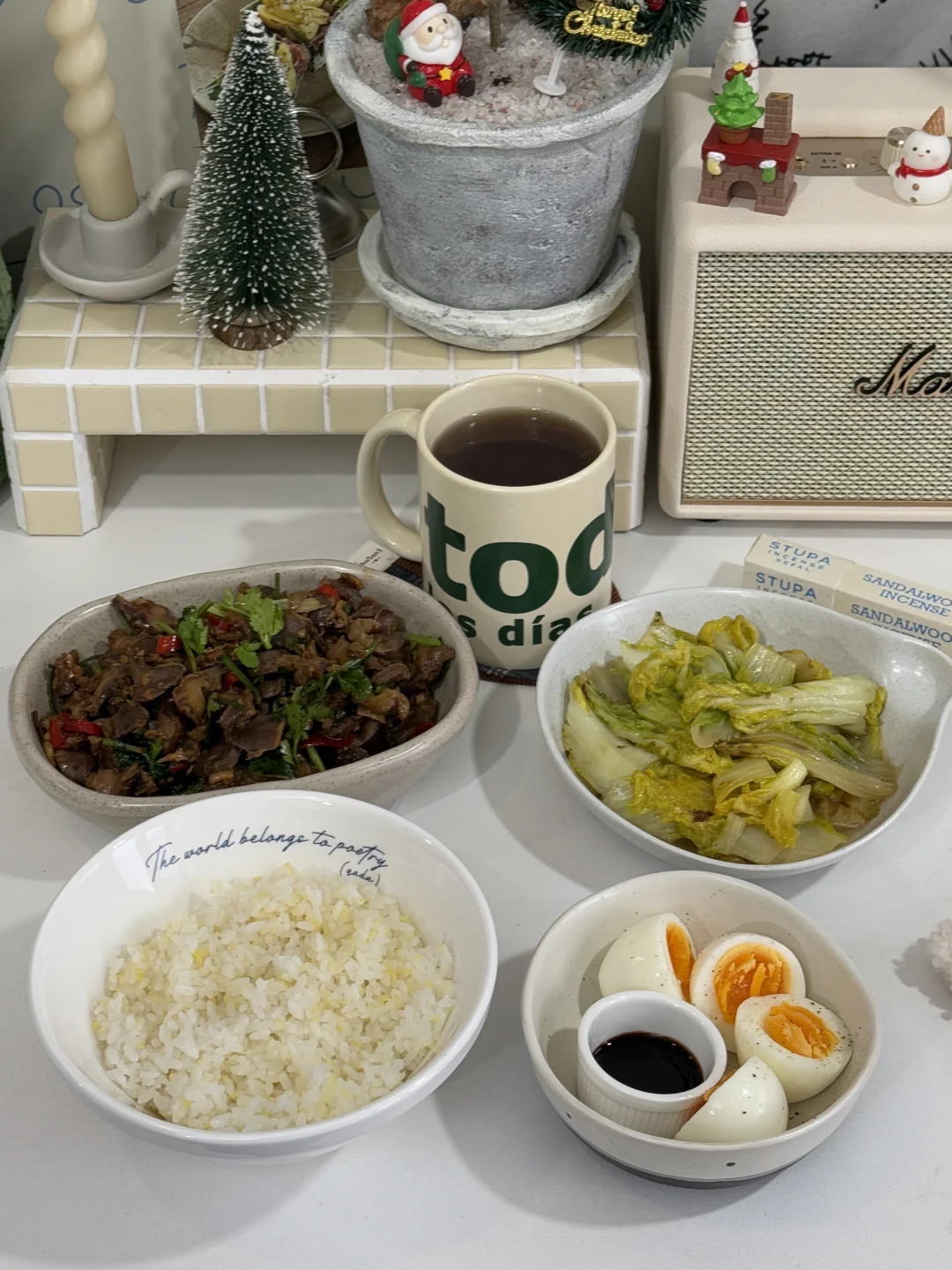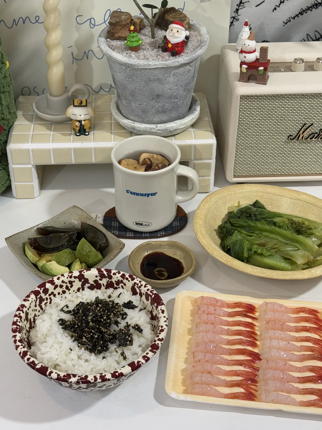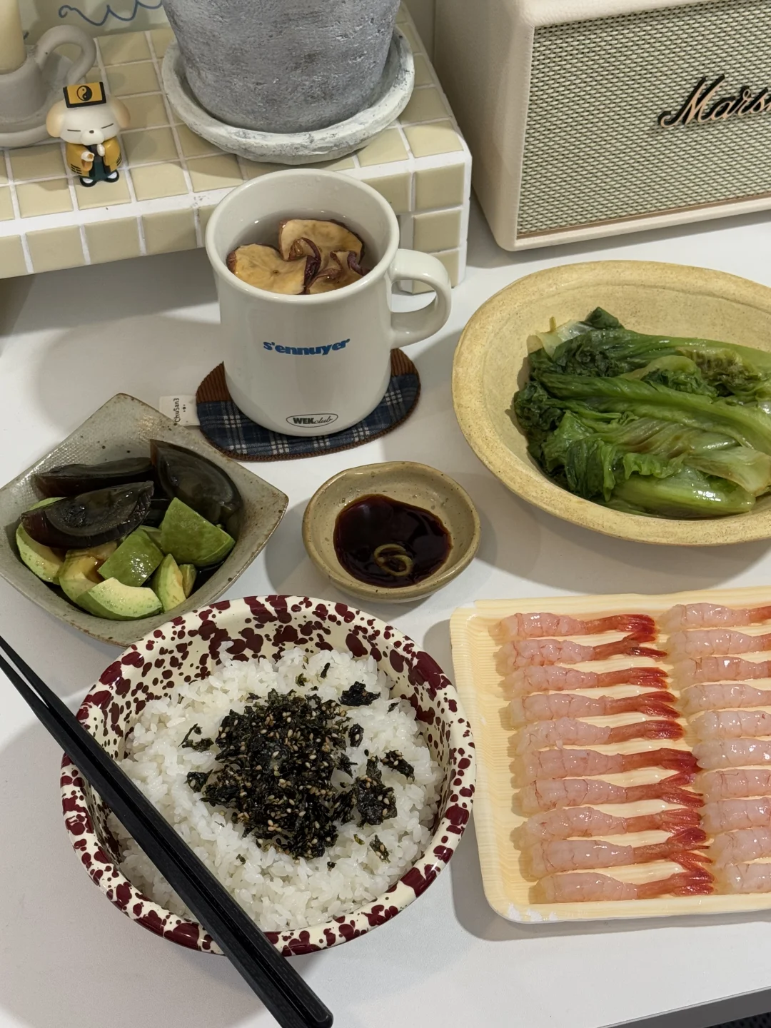 一人食做的越来越得心应手了 - 做了香辣鸡珍(很下饭 - 还复刻了辣海灵菇拌饭🐙 辣的我头皮出汗,但是真的很过瘾[赞R] - 还有吃不腻的甜虾配饭 简直是练后蛋白餐🥣 - 用剩饭做的番茄鸡蛋虾仁烩饭 偶尔吃这种黏黏糊糊的烩饭 也蛮不错的[烟花R]