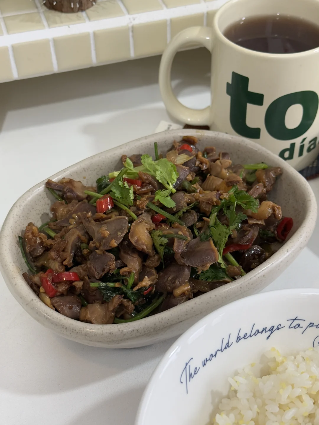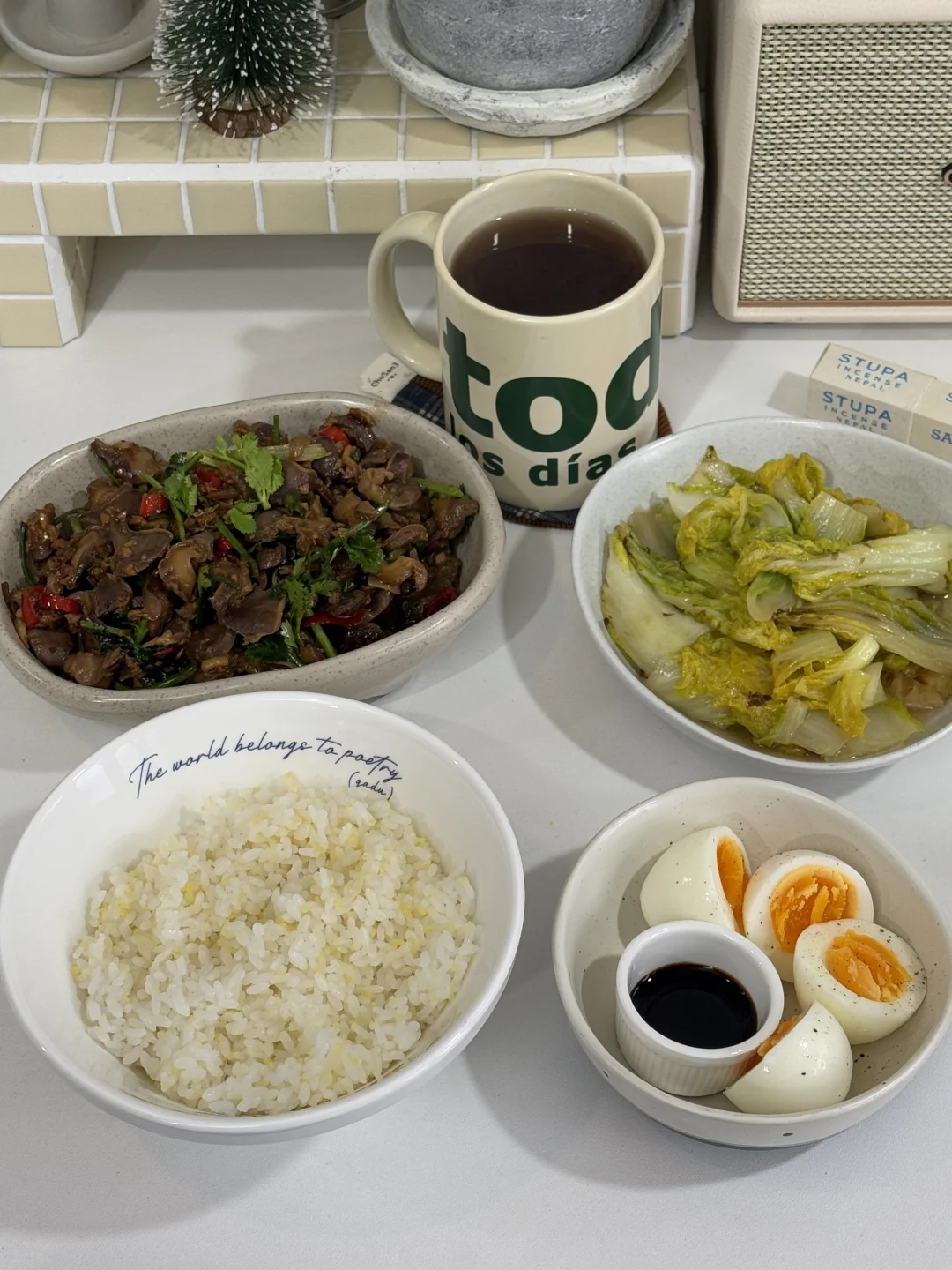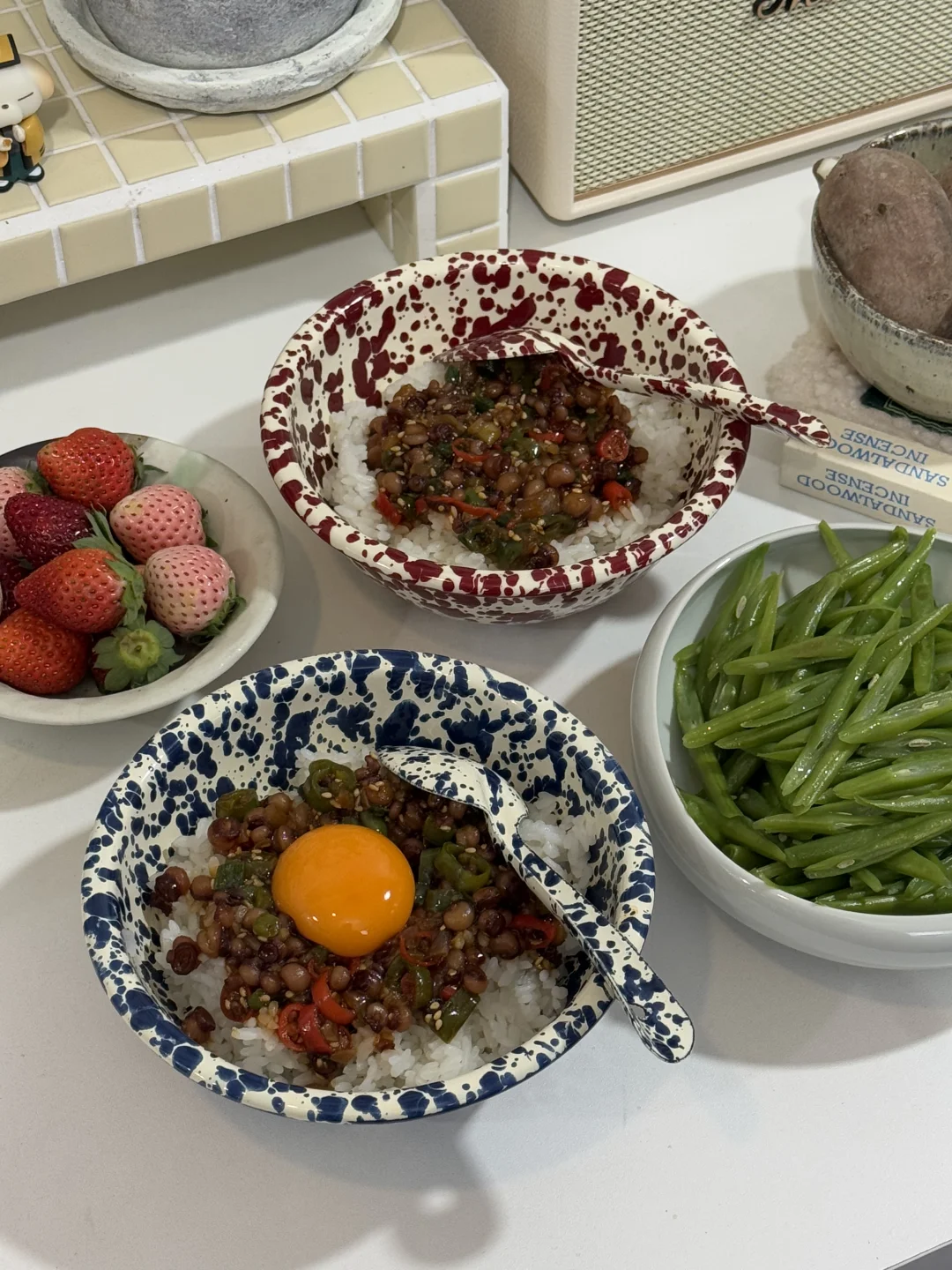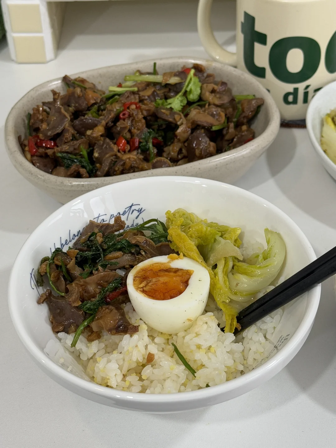 一人食做的越来越得心应手了 - 做了香辣鸡珍(很下饭 - 还复刻了辣海灵菇拌饭🐙 辣的我头皮出汗,但是真的很过瘾[赞R] - 还有吃不腻的甜虾配饭 简直是练后蛋白餐🥣 - 用剩饭做的番茄鸡蛋虾仁烩饭 偶尔吃这种黏黏糊糊的烩饭 也蛮不错的[烟花R]