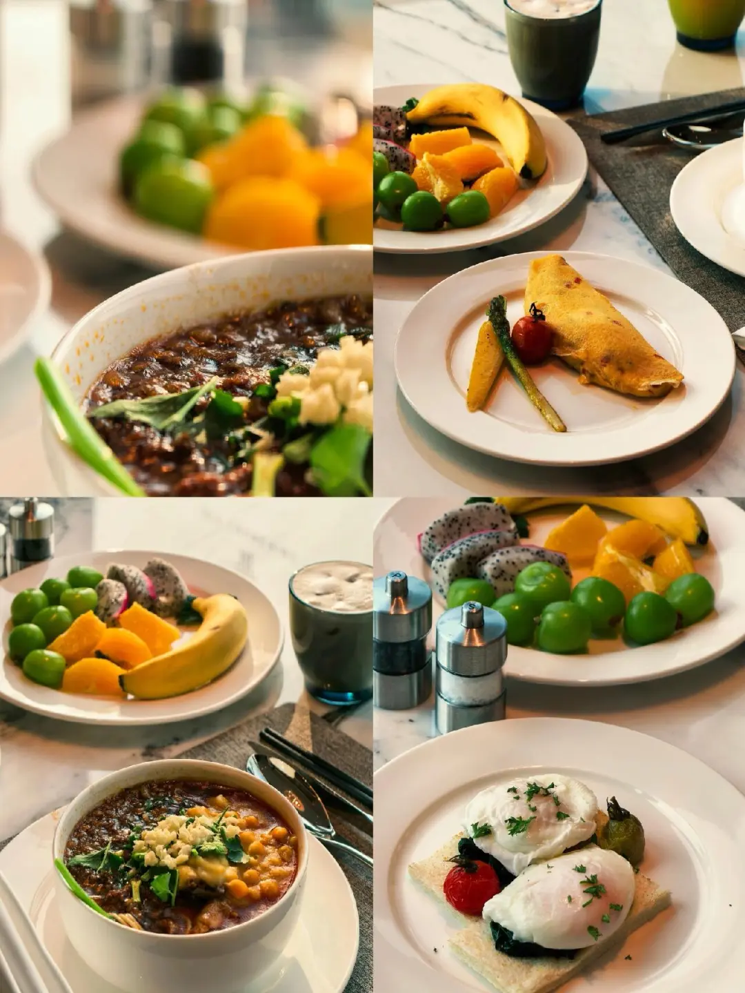 着重说一下早餐,虽然目前只开了半台,但是品种还是足够丰富,班尼迪克蛋、炒蛋卷等单点也是配齐了,另外的手工蒸包和炒鸡很好吃。
