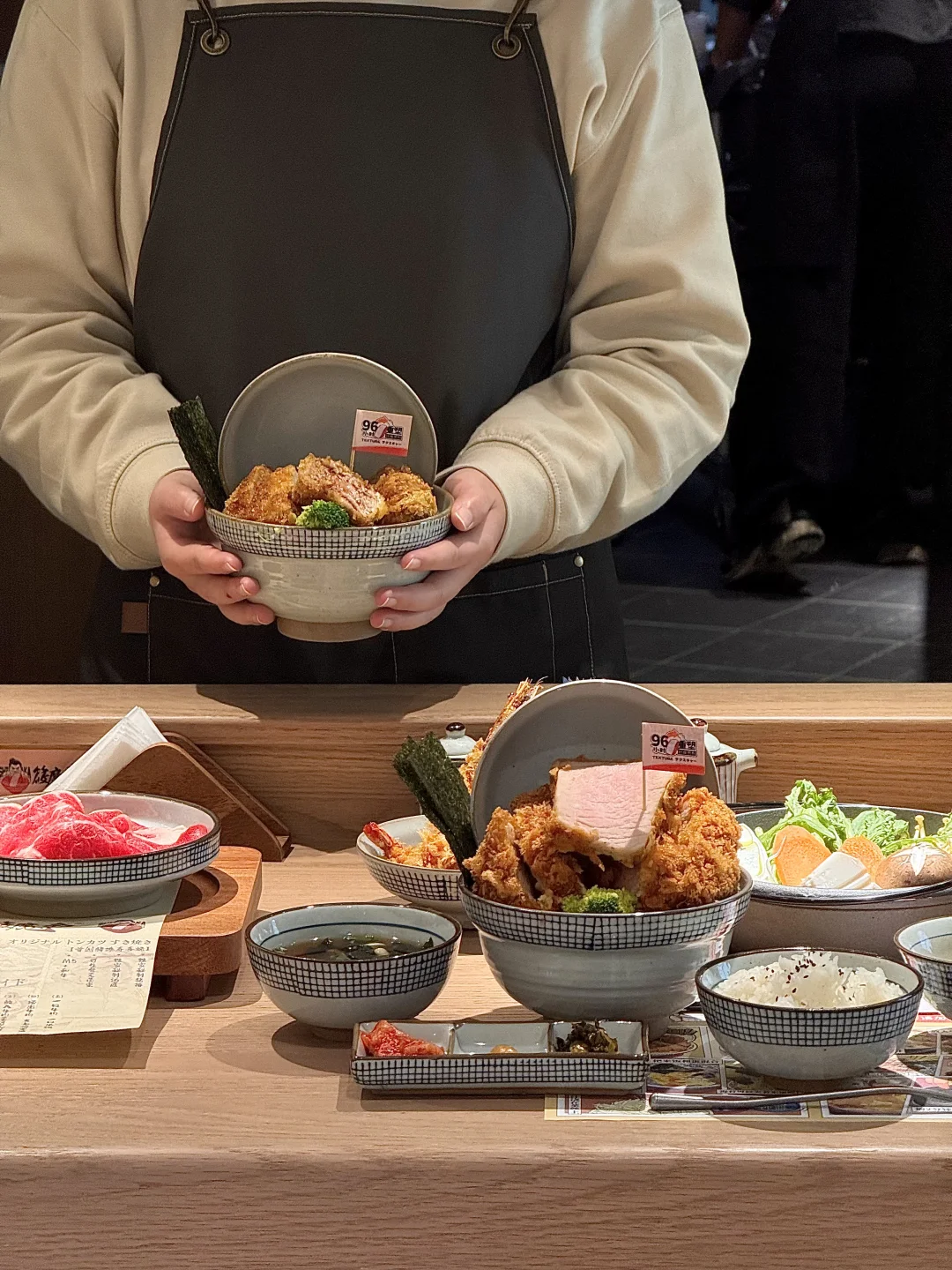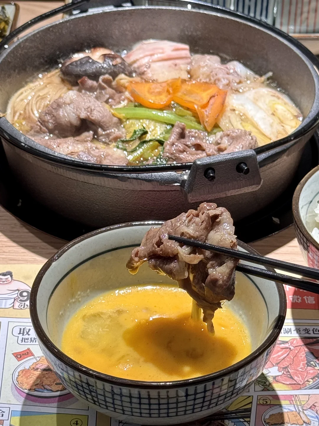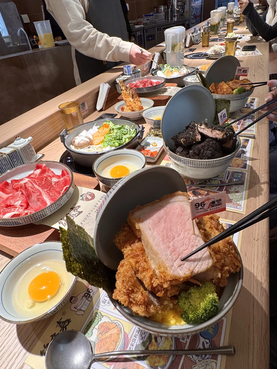 就在地铁口出来的负二楼!叫:筱魔嘉)现点现炸的炸猪排一人食~我们点了厚切旋风猪排饭和黑金金棒里脊猪排饭🍚外酥里嫩还掉渣!蘸点烧肉汁真的绝了。。还有寿喜烧吃完可以➕蛋液!鲜嫩的滑蛋猪排暖呼呼好落胃😭好吃到全部光盘……