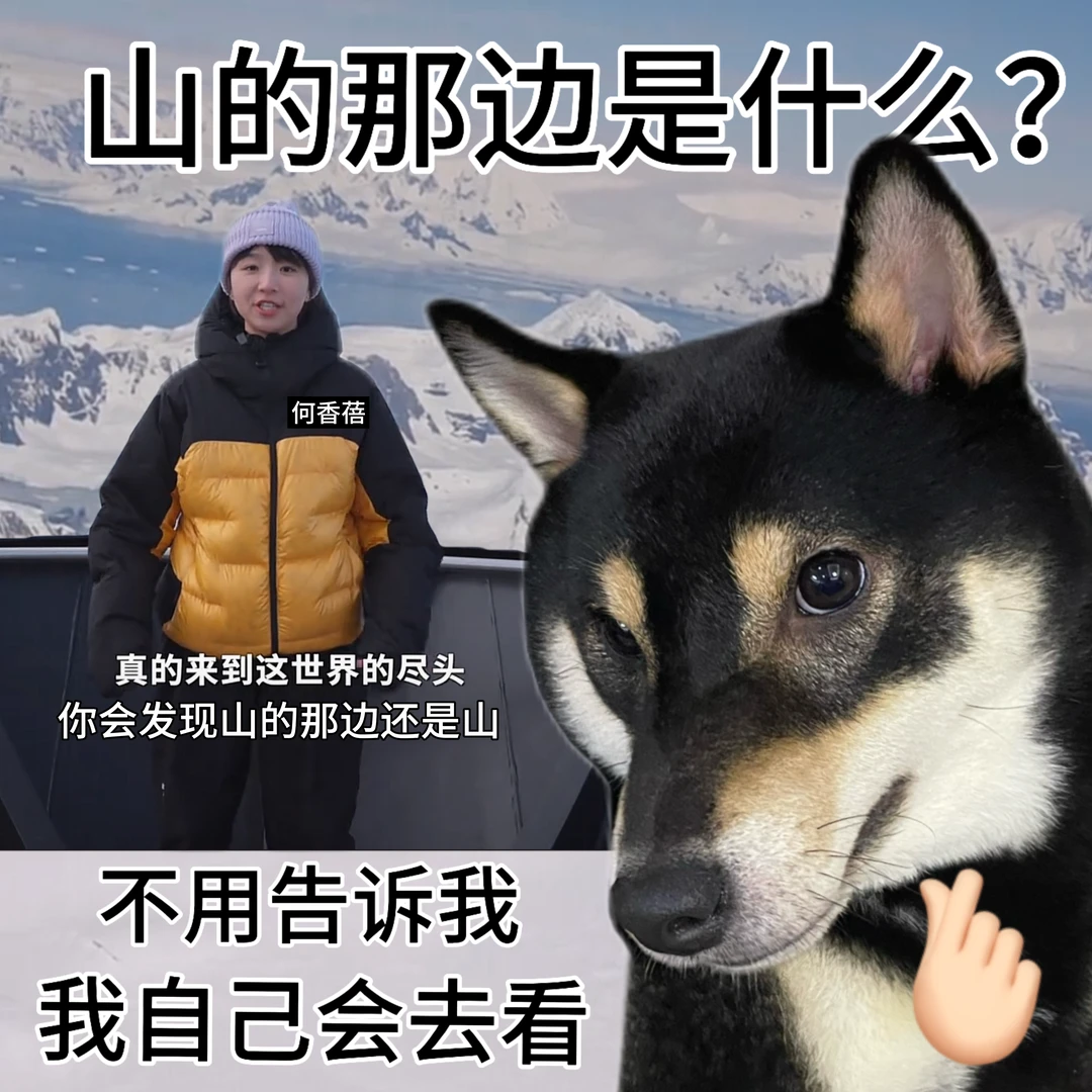 老己,我一定带你出切看看… 虽然看完何香蓓去南极的视频后 她已经在世界尽头告诉我山的那边还是山 但我还是想带老己去看看 亲眼看看山外的山 亲自确认一下这座山是不是真的没有蓝精灵😌