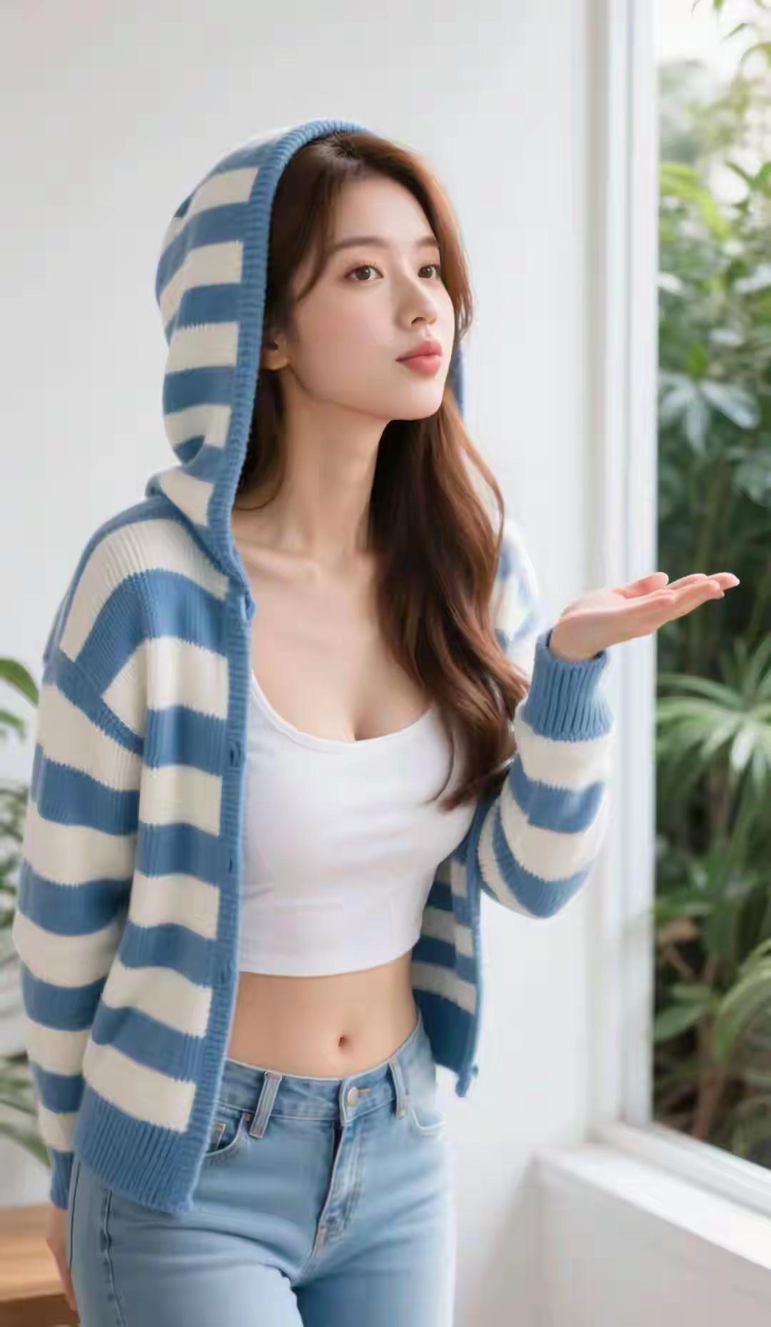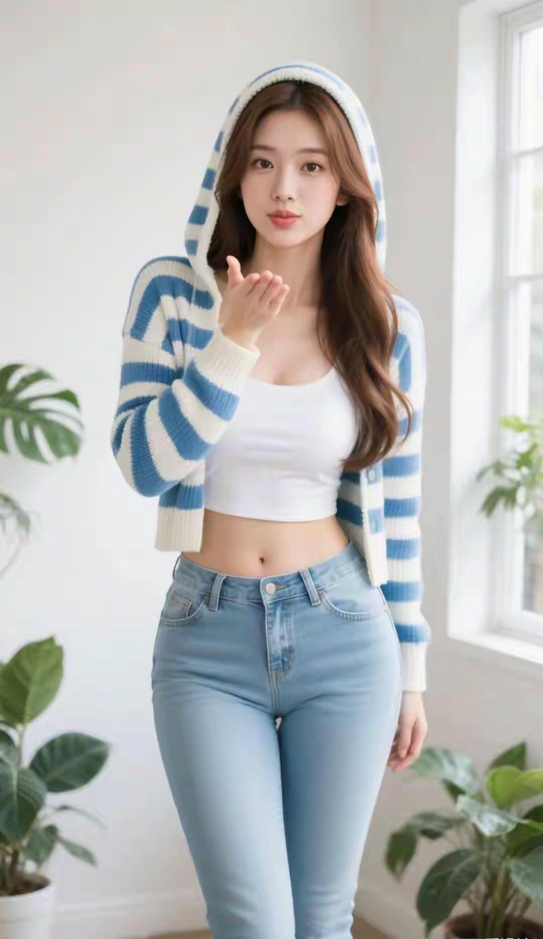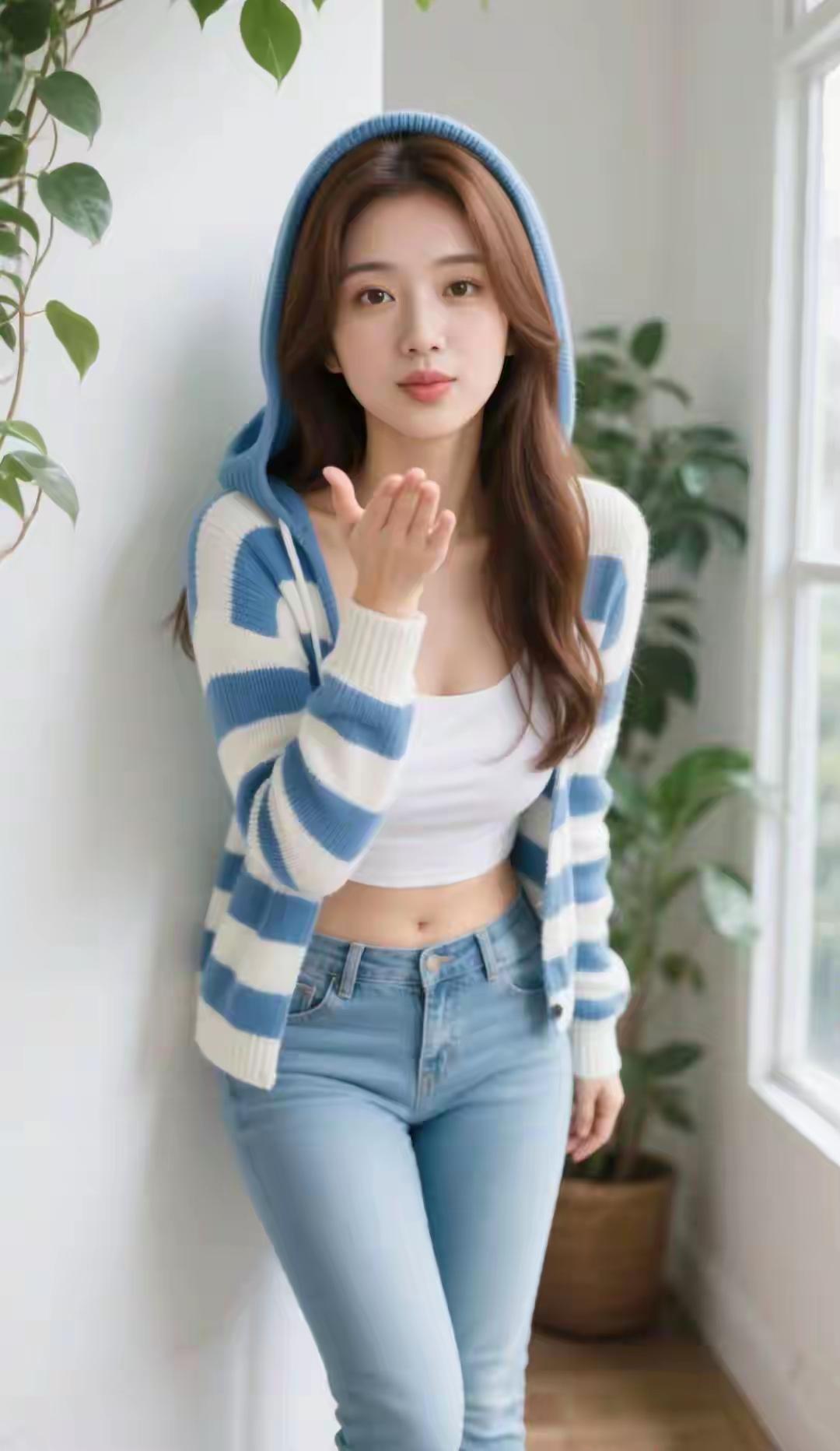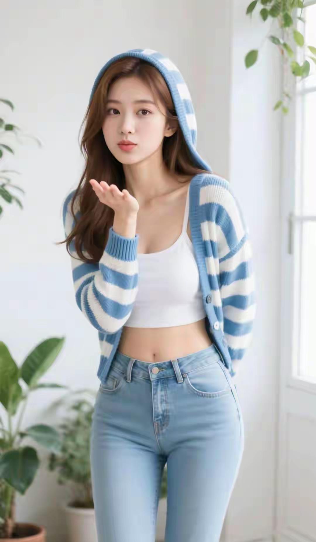 光之影&AI都市街头风,白衬衫+牛仔裤,清新自然,轻松出行!白色衬衫穿搭简