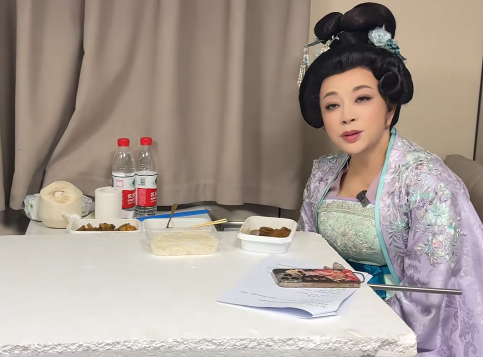 拍摄短剧时,她一连工作十几个小时,脸上只是稍显疲态,吃的盒饭也非常一般。