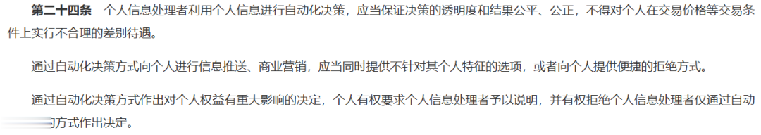 实际上,中国实施纽约州的类似法律已具备一定可行性。我国的《个人信息保护法》在第24条已经明确规定:“个人信息处理者利用个人信息进行自动化决策,应当保证决策的透明度和结果公平、公正,不得对个人在交易价格等交易条件上实行不合理的差别待遇。”国家网信办等四部门发布的《互联网信息服务算法推荐管理规定》,对算法的公平公正提出了具体要求。