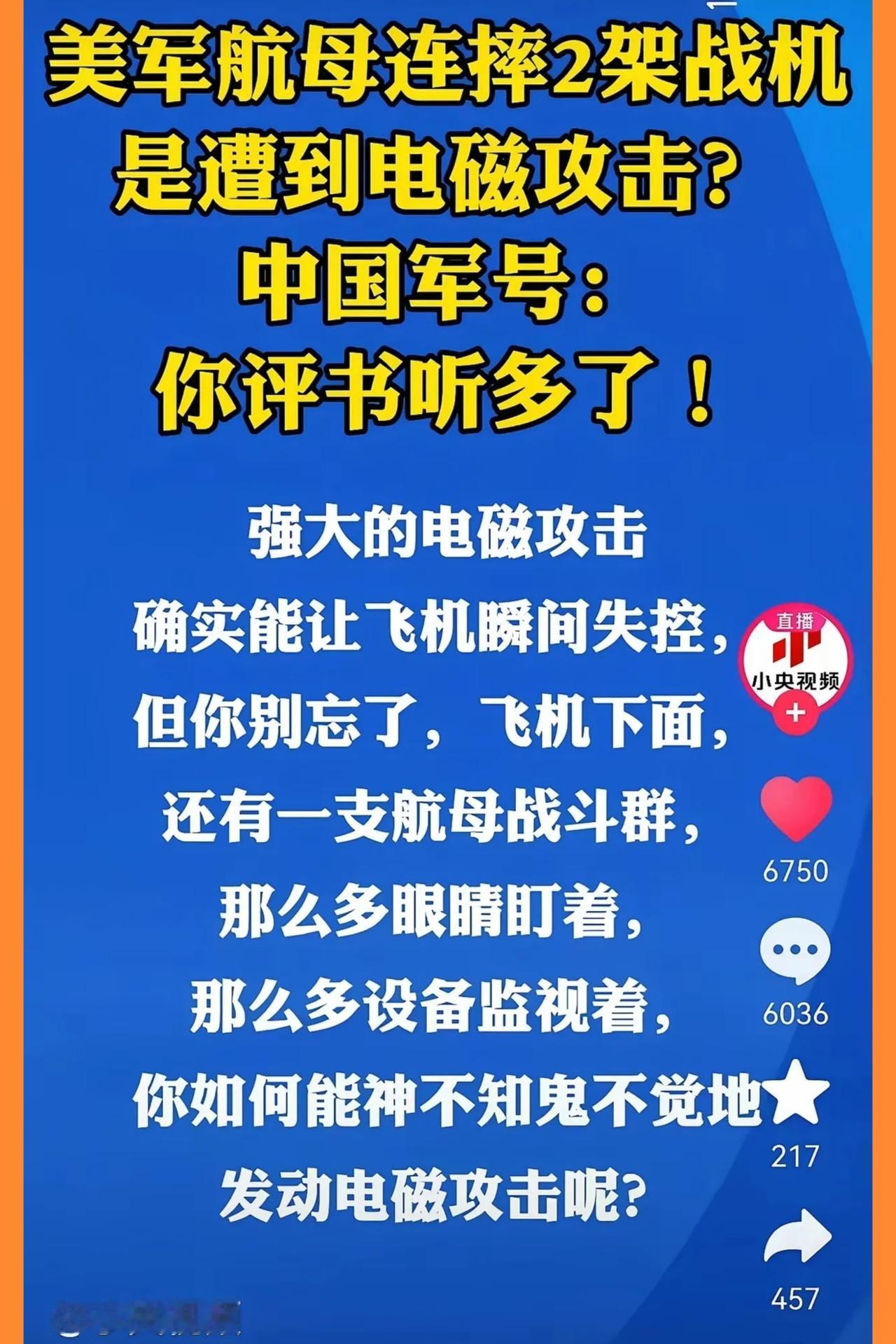 小央视频如今倒也蛮有趣,时不时就出来吊人胃口,还总提起电子战的事情 去年最后两个月,美国航母不是总在南海和台海莫名坠机吗?还有驻韩美军和日本空自的“MQ - 9”死神无人机也莫名坠机或失踪。 于是社交平台上有一些自媒体说那是中国干的,是解放军运用电子战将其弄下来的,小央视频还出来辟谣。 辟谣就辟谣吧,却要添上一句“强大的电磁攻击的确能让飞机瞬间失控”。今天小央视频又发布一条消息,称美国机密报告承认,中国电子战和导弹技术均超越美军。 除了坠机,美国在台海和南海还老是撞船,甚至连核潜艇都能撞上山体。按说美国海军在中国周边海域溜达了几十年,海底水文资料比我每天上班的路都熟悉,真不知是怎么撞上的。 要说暗中搞电子战这种事,中国肯定不会做,但美国海军在世界各大洋游弋,在其他海域要么不出事,要么出事也能找到缘由(比如在红海航母急转弯甩尾一架舰载机)。 美军唯独在中国周边海域频繁出事,且尽是些稀奇古怪的状况,事后美国要么缄口不言,要么就是特朗普这种非军事专家出来称“航空燃油质量不佳”。 不过,中国电子战能力应该不弱,尤其是空军,主力战机都发展出了电子战型号,像歼 - 15、歼 - 16等,美日战机都吃过亏。 据说连歼 - 20S都有了电子战飞机型号,歼 - 20本身隐身能力就超强,配备的霹雳 - 17高超音速空空导弹更是没谱,在西太还有敌手吗?还要发展电子战飞机,这是打算像印巴空战那样,永远零封对手了!美军电子战能力