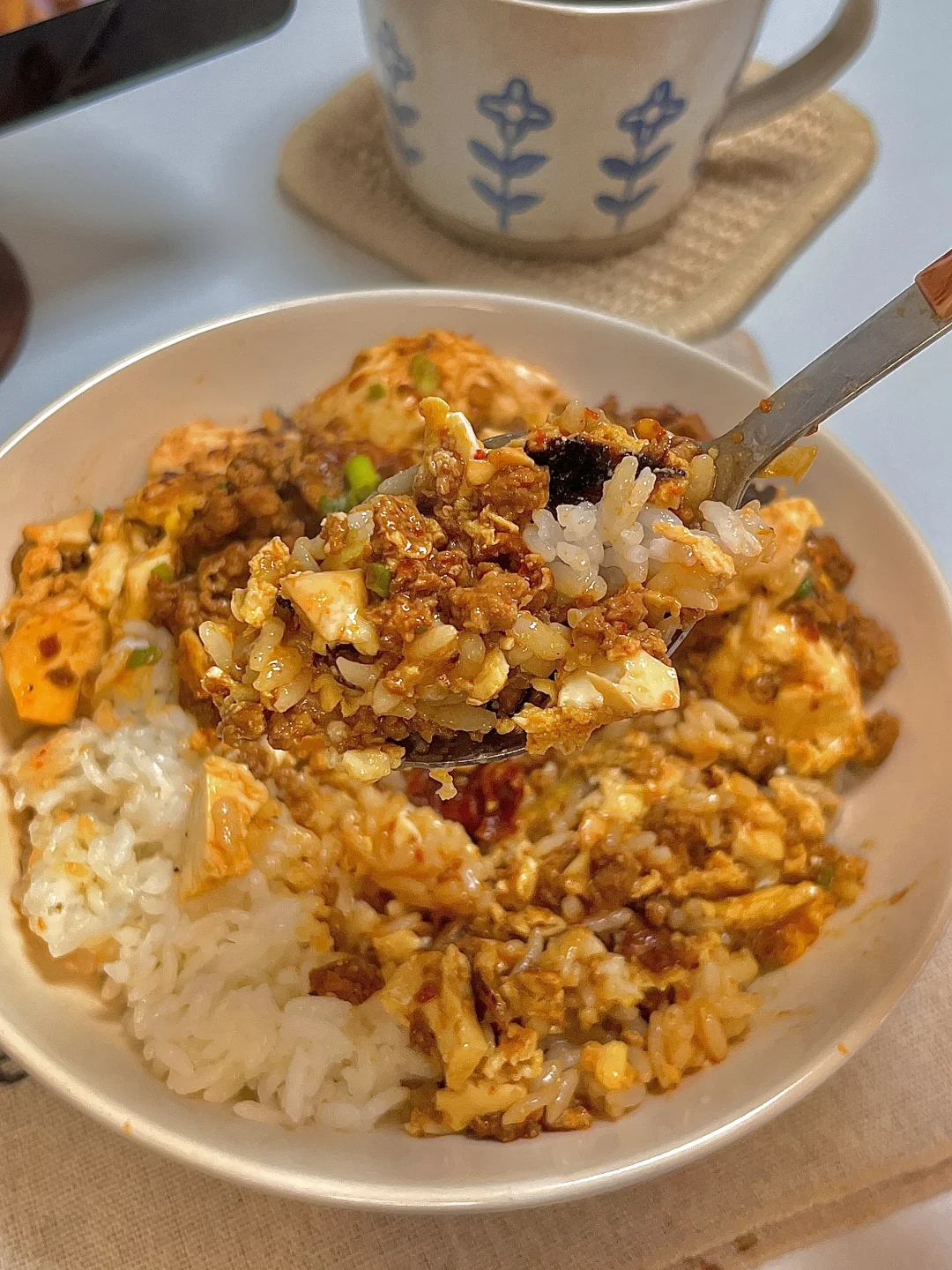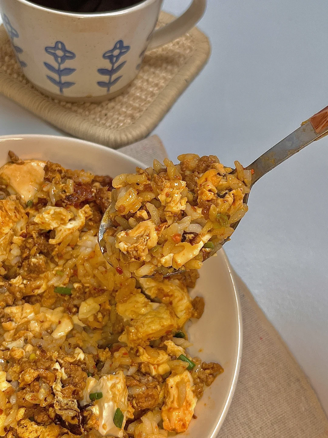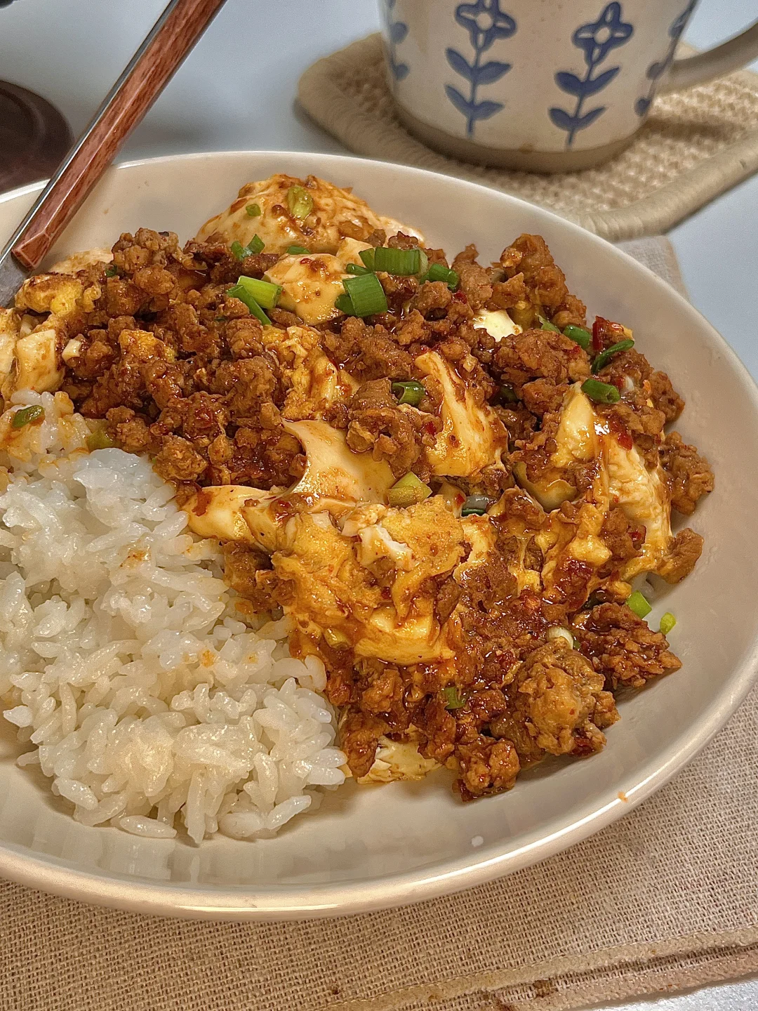 今日份一人食: 牛肉沫豆腐抱蛋 美式 . 牛肉沫鸡蛋豆腐嫩芙芙的,吸满了肉酱的香味简直太下饭啦😋拌米饭巨好吃 ~鲜香嫩滑,做法超简单,爱吃的宝快去试试呀✌🏻