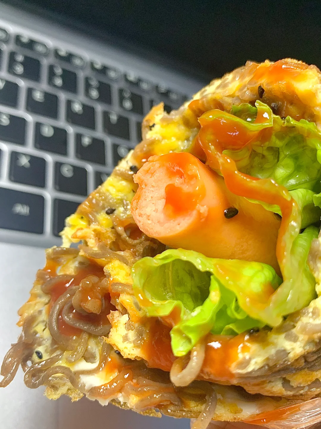 是谁发明的这个吃法!我感谢他一辈子‼️😭 荞麦面卷饼YYDS!这简直就是解馋掉称神器‼️ 我是真的吃不腻!一口下去,就是双倍的快乐! 香酥的鸡蛋和糯糯叽叽的荞麦面搭配火腿肠,一整个香哭了!碳水蛋白质膳食纤维全有了!嘴馋手抓饼的时候你就知道它有多好了吃了! [彩虹R]食材:荞麦面 鸡蛋 生菜 火腿肠 [开箱R]做法:如图所示~