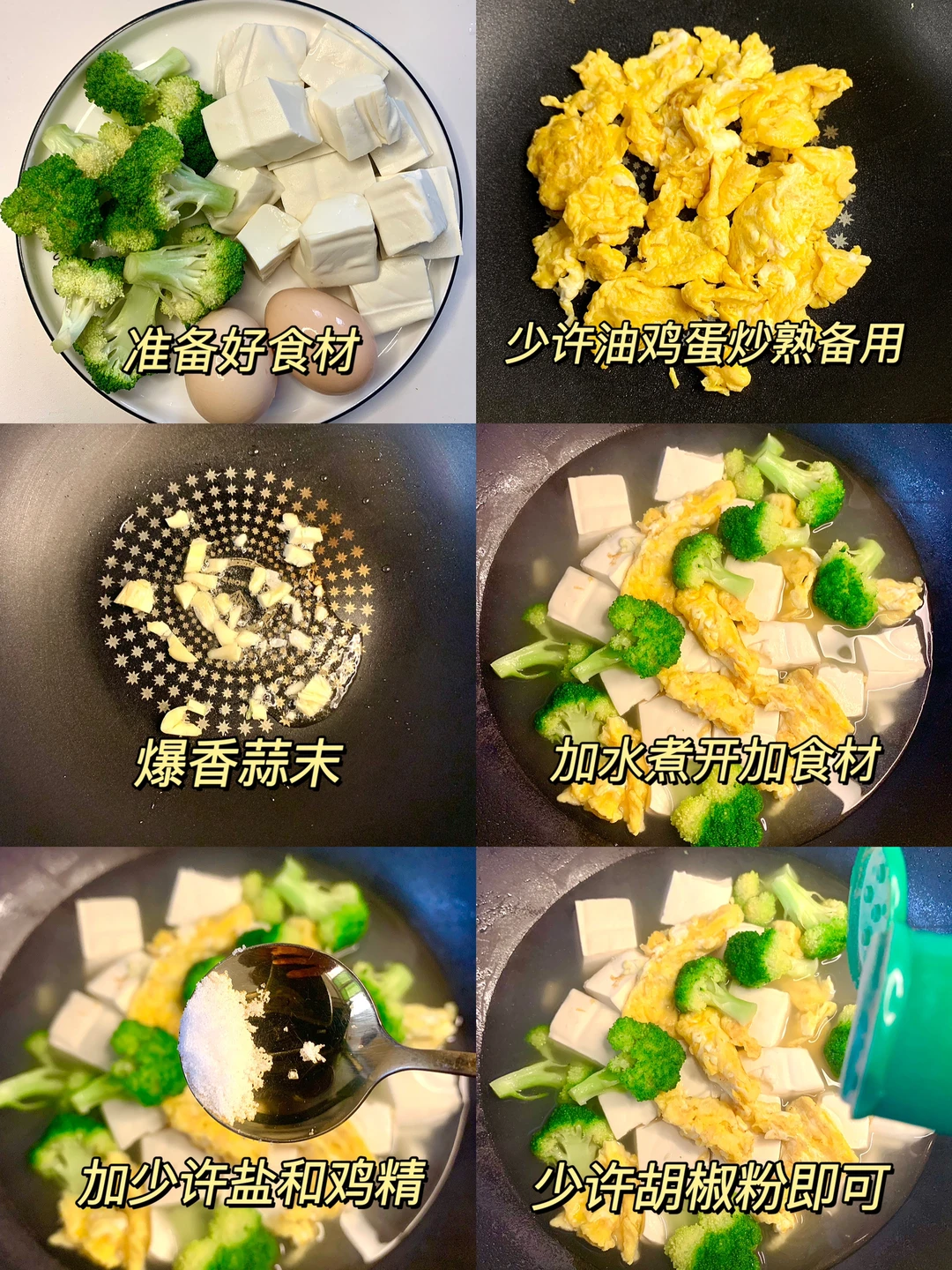 姐妹们大家好呀~今天分享这一道刮油神器「西兰花豆腐汤」低脂高蛋白,汤鲜味美!吃起来清爽可口,好吃没负担!遇到平台期的姐妹一定要去试一试! 🍃食材:西兰花 豆腐 鸡蛋 🥣做法:如图所示哦👆🏻
