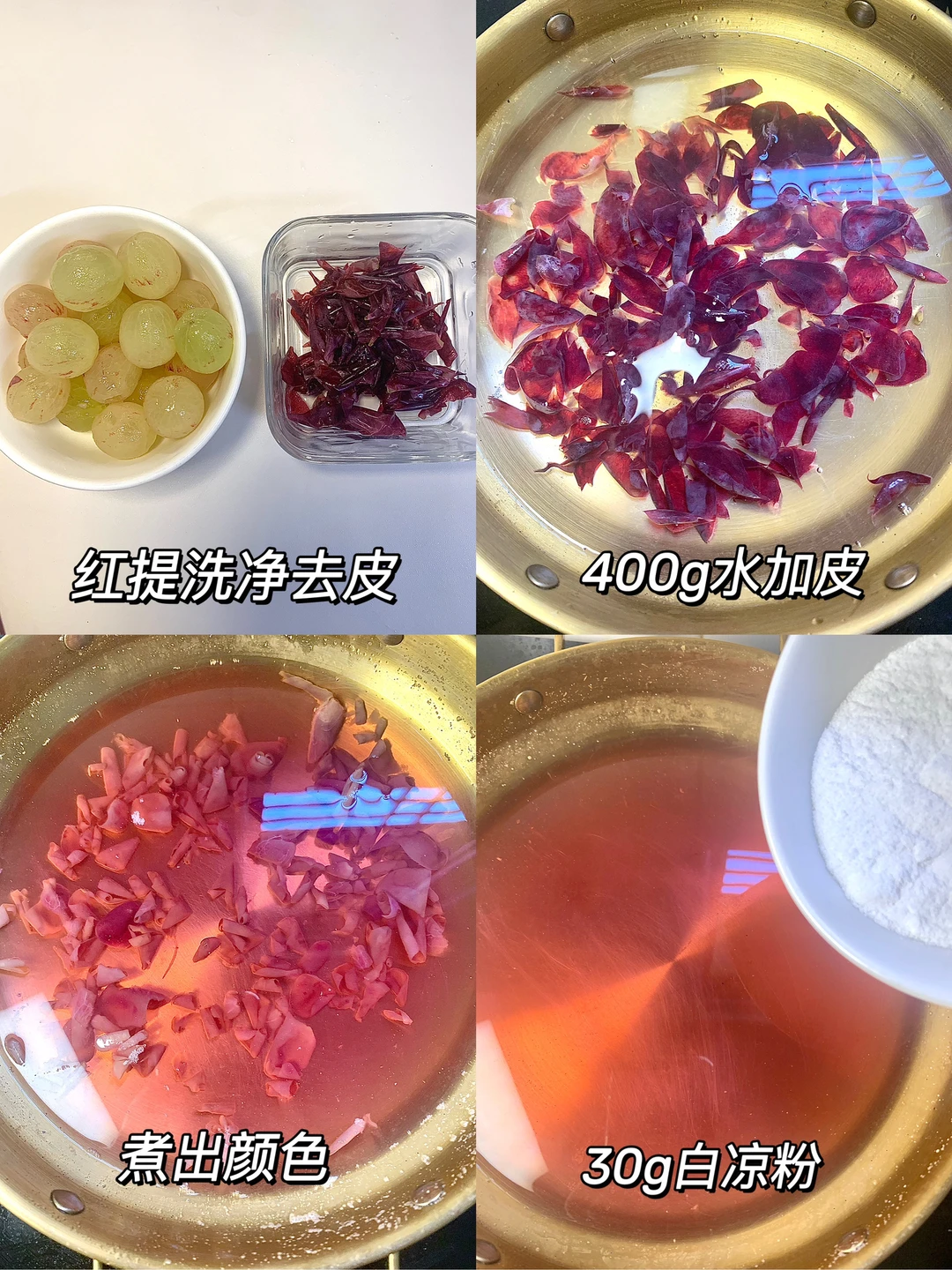 咱就是说这个提子奶冻也太好喝了吧,酸酸甜甜,奶味浓郁,绝绝子[赞R] 夏天想喝饮料了,就喝这个! 🍇食材:红提100g➕白凉粉30g➕白糖15g➕牛奶 🥣做法:如图所示~ 量可以根据自己买的食材调整哦~