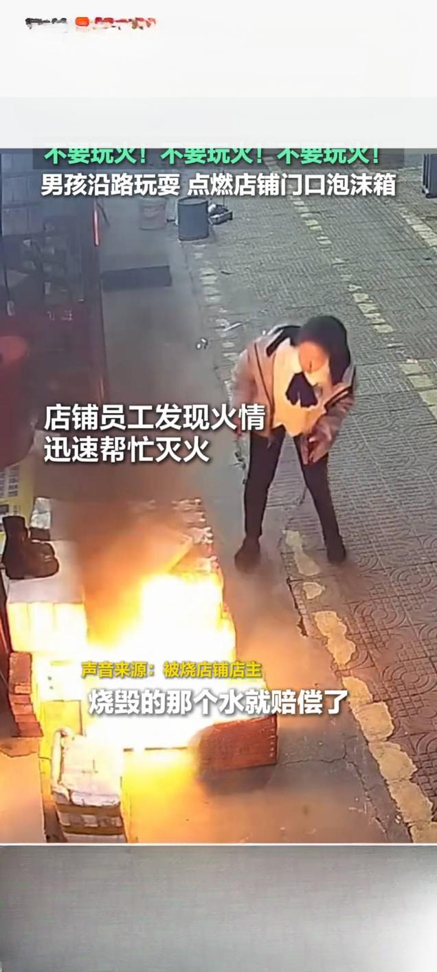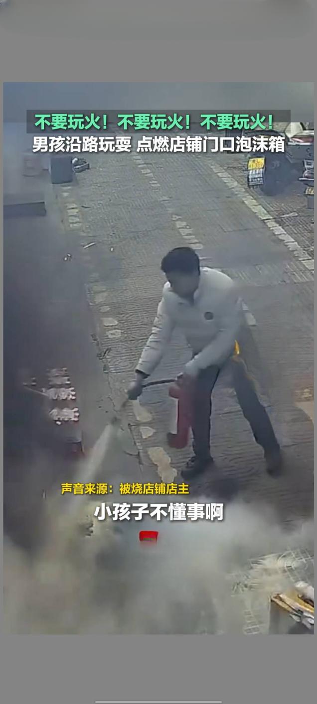男孩贪玩点燃店铺泡沫箱 员工及时灭火避险情 近日,湖南郴州某街道发生一起火情,一名男孩在沿路玩耍时点燃店铺门口的泡沫箱,所幸店铺员工发现及时,迅速采取灭火措施,未造成人员伤亡和重大财产损失。 据了解,事发当天,该男孩在街道上闲逛玩耍时,出于好奇点燃了路边一家店铺门口堆放的泡沫箱。泡沫箱属于易燃物品,遇火后迅速燃烧,火势很快蔓延开来,冒出大量浓烟,情况十分危急。 正在店内工作的员工发现火情后,立即意识到危险,没有丝毫迟疑,迅速取出店内配备的灭火器,冲向燃烧的泡沫箱。在确保自身安全的前提下,员工熟练操作灭火器,对准火源根部喷射。经过几分钟的紧急处置,明火被成功扑灭,随后员工又仔细检查现场,确认无复燃风险后才松了口气。 此次事件虽未造成严重后果,但给大家敲响了警钟。消防部门提醒,家长应加强对未成年人的安全教育,严禁孩子玩火,告知其火灾的危险性和相关安全常识。同时,商铺及居民也需规范堆放易燃物品,配备足量消防器材并确保能正常使用,提高消防安全意识和应急处置能力,共同防范火灾事故的发生。目前,相关部门已联系男孩家长,对其进行了批评教育,家长表示将加强对孩子的监管。严禁熊孩子玩火 小孩着火 加强未成年人及安全教育
