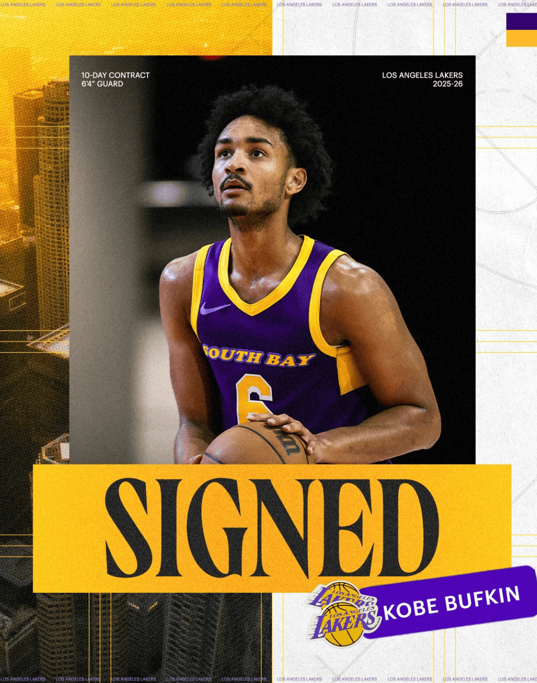 虎扑01月14日讯湖人今日官方宣布,球队已经与科比-巴夫金签下了一份10天合同。