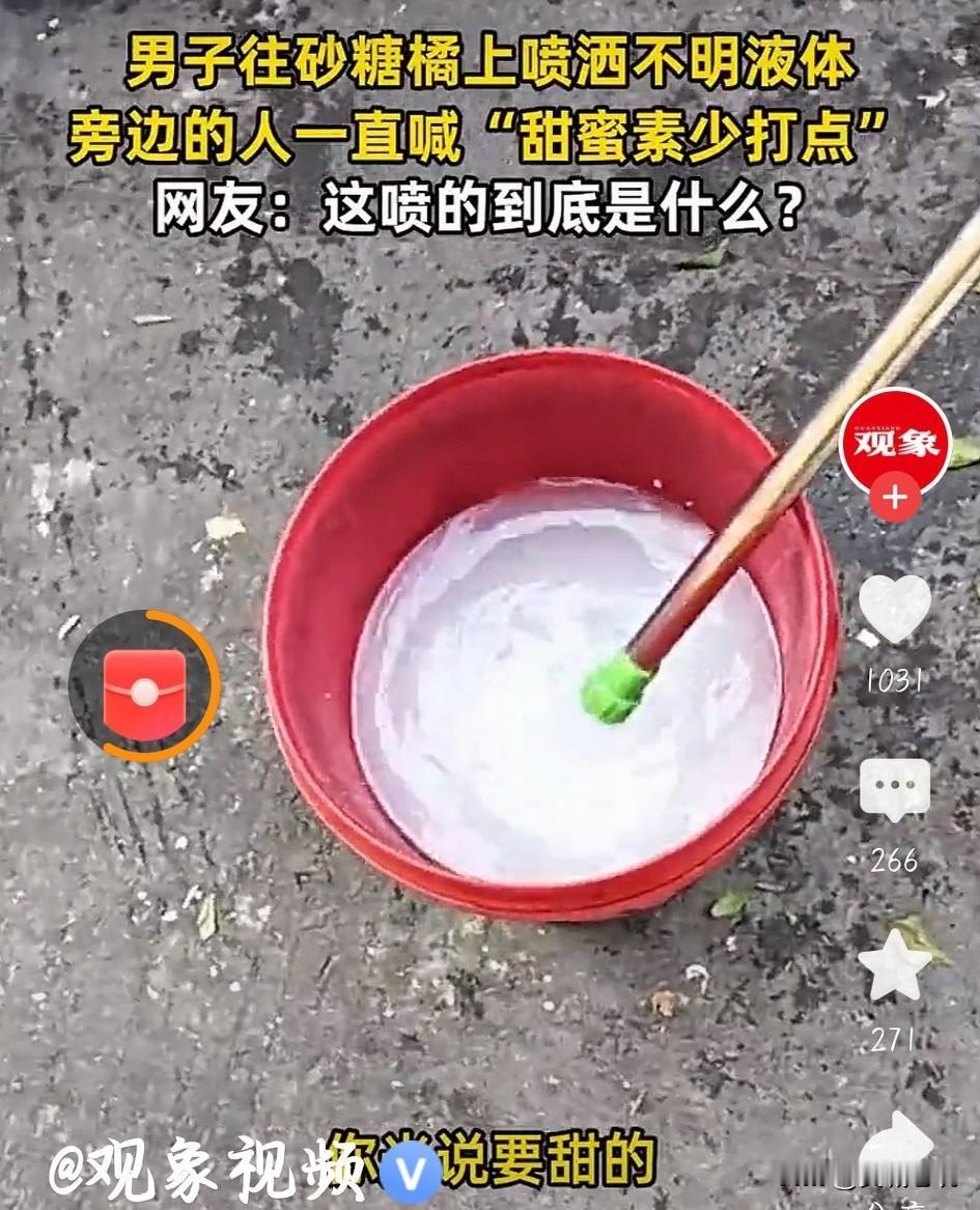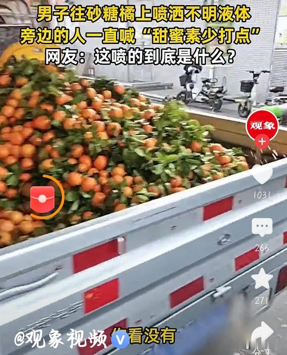 这砂糖桔还能吃吗? 据《今日头条》热点披露:2026年1月12日,一贩卖水果砂糖桔的男子在一桶白色的液体里用喷头吸水,吸满水后围着一辆装满砂糖桔的三轮车喷水,旁边还有一男子的声音:“少喷点、少喷点,太多了容易烂。” 在商贩心里想的是怎么样让砂糖桔有卖相而且不烂,至于这样的甜色素对顾客的身体有没有影响都是不重要的。 眼看春节就要到了,砂糖桔是每家每户招待客人桌上必不可少的常用水果。尤其是彤红的颜色,甜甜的口味,很能吸引小客人的眼球,从我家往年的经验来看最轻易被小客人掏空的果盘就是砂糖桔,看到这则消息,今年招待客人,尤其是小客人,还能用砂糖桔吗?就是对于成年人来说喷洒这么多甜蜜素的砂糖桔还能吃吗? 大家认为呢?欢迎留言。