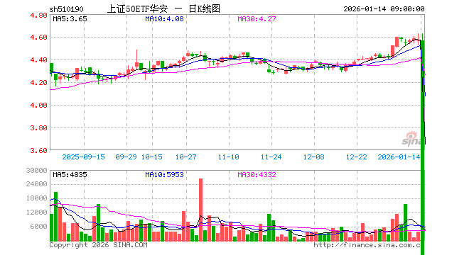 1月13日,上证50ETF华安(510190)跌0.39%,成交额167.64万元。当日份额增加50.00万份,最新份额为3315.08万份,近20个交易日份额减少400.00万份。最新资产净值计算值为1.51亿元。